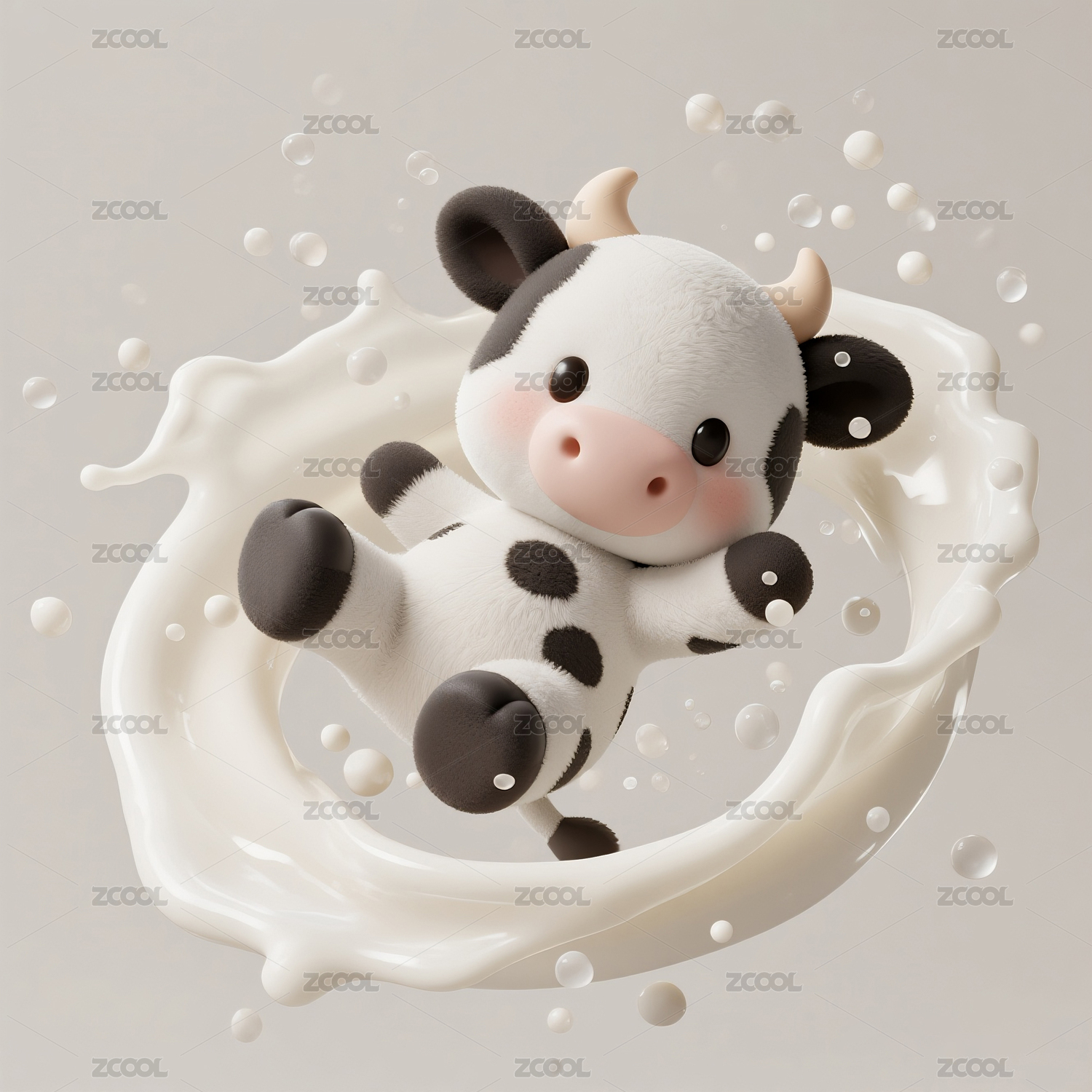 在牛奶里跳舞的奶牛宝宝动漫卡通形象