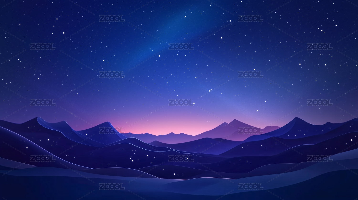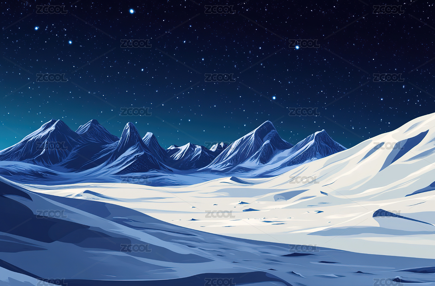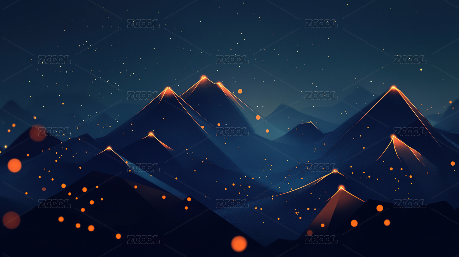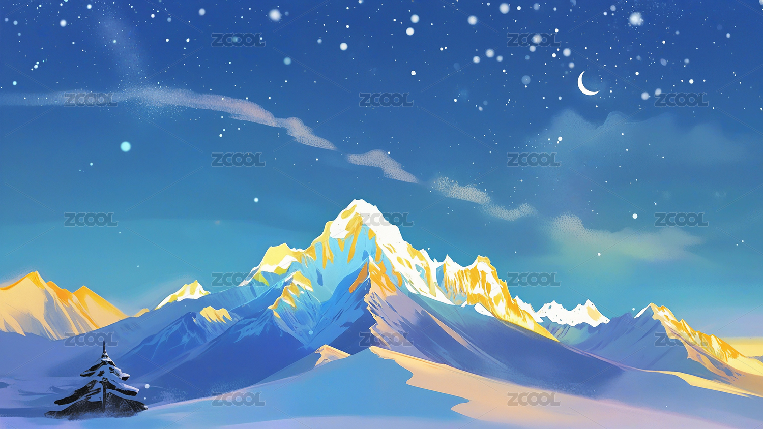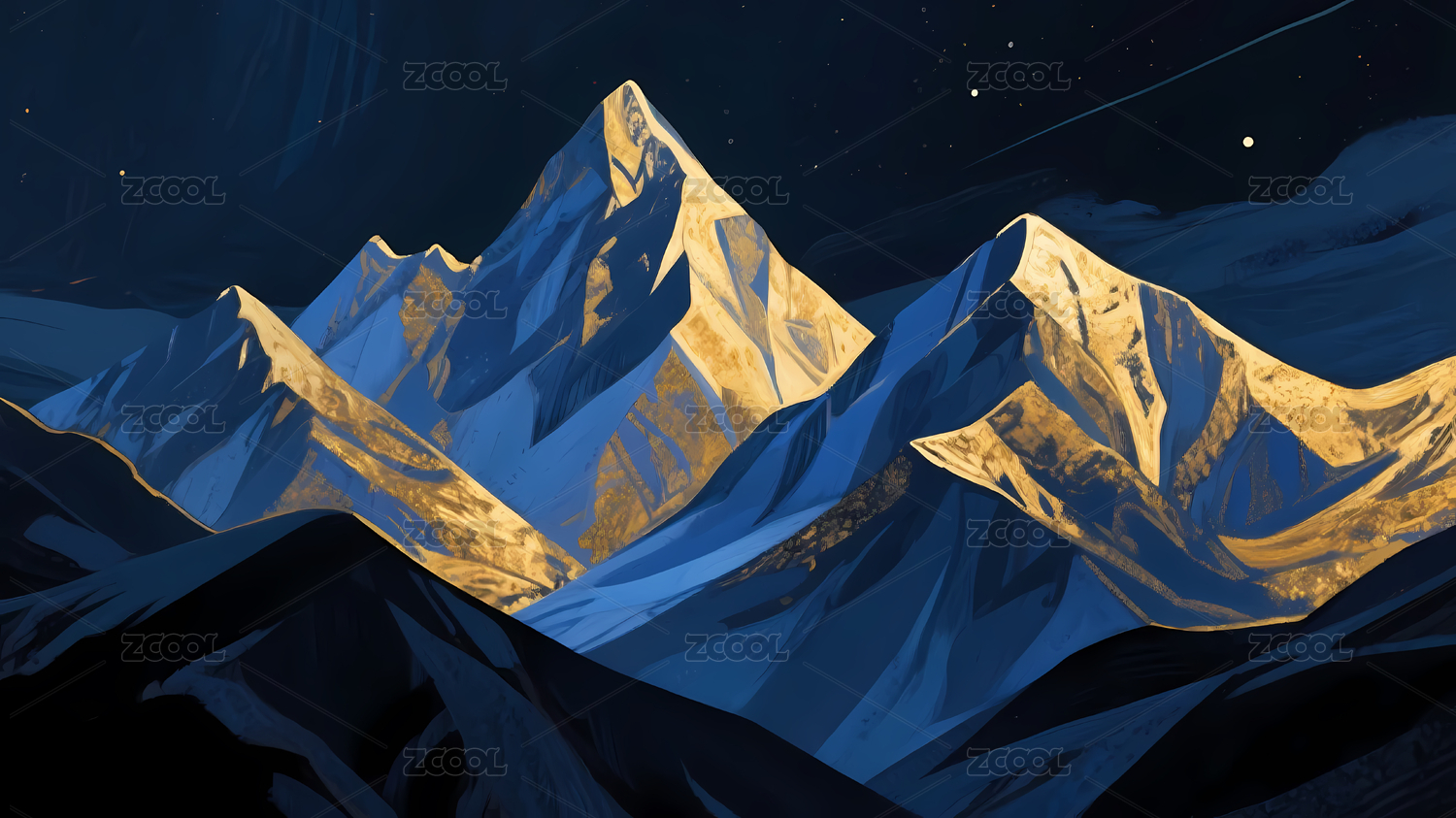 自然,深蓝,夜空,宁静,雪山,星星,金光,神秘,浅蓝,峰顶