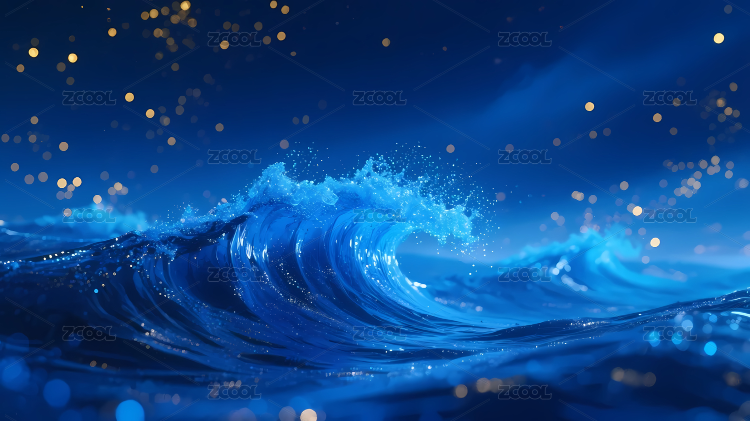 光点,神秘,宁静,深蓝,波浪,渐变,天空,夜晚,海洋,浪漫