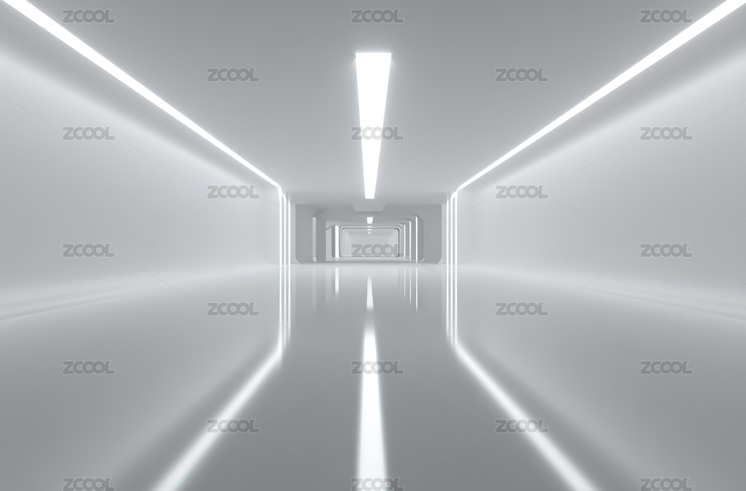 科技,未来,对称,灯带,墙面,走廊,冷色,蓝光,门框,光滑