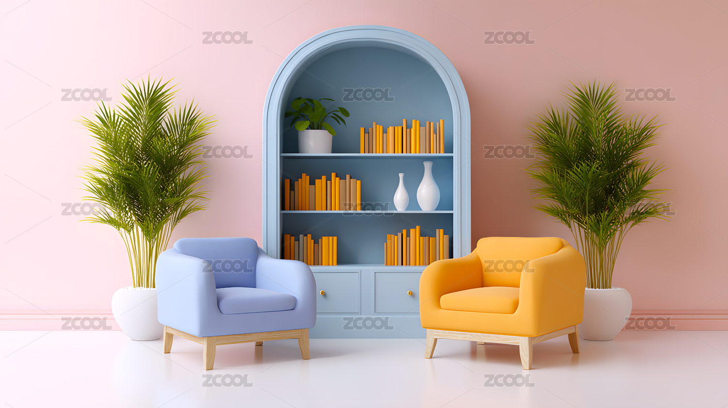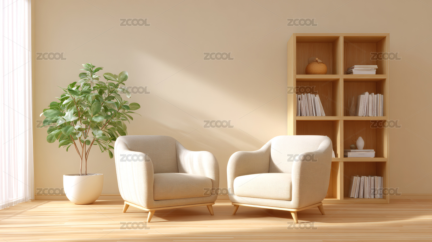 书柜前两把单人沙发