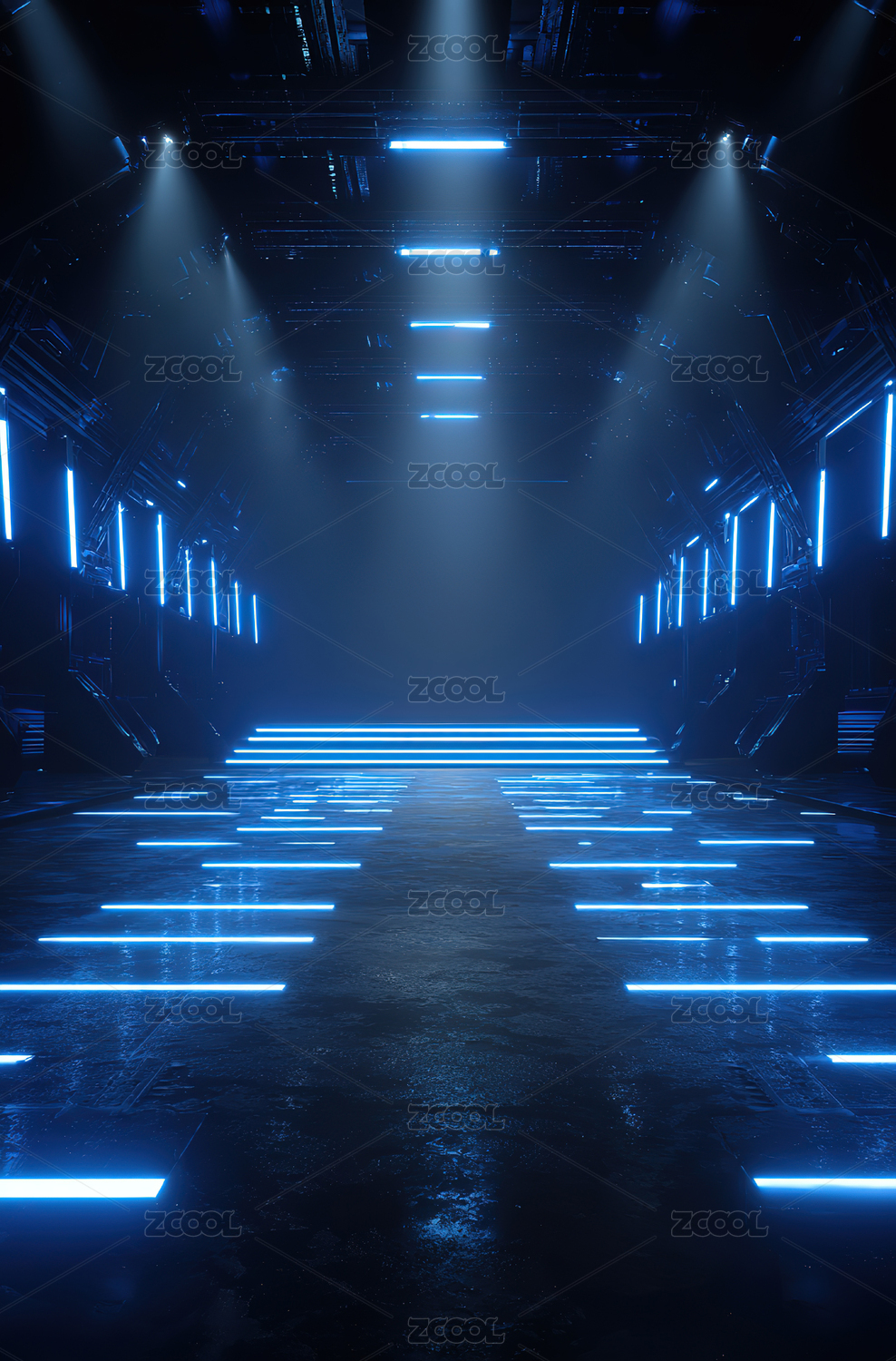 蓝色霓虹灯抽象空场景光束射灯光线概念插图