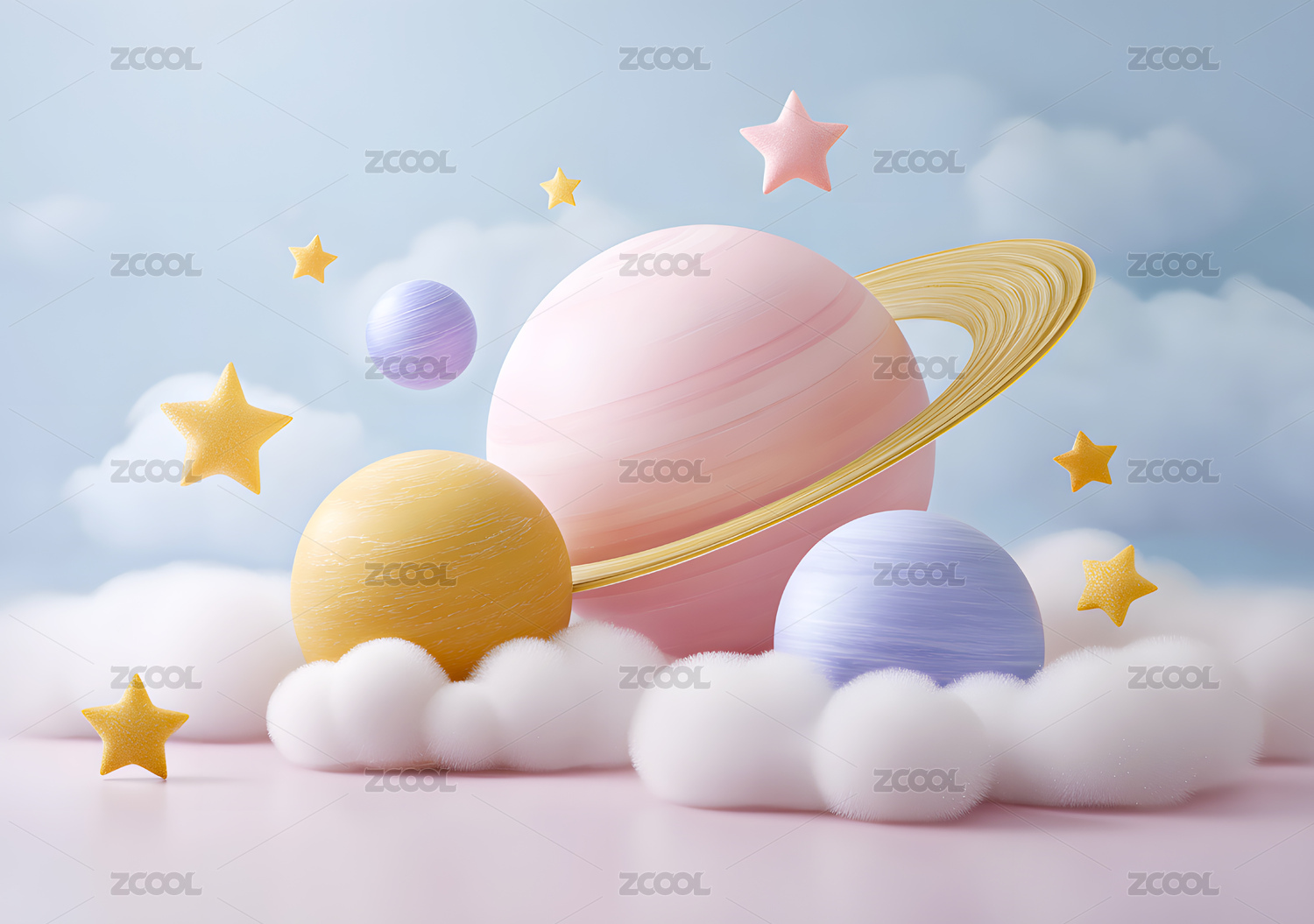 粉色可爱3D立体建模星球梦幻壁纸背景