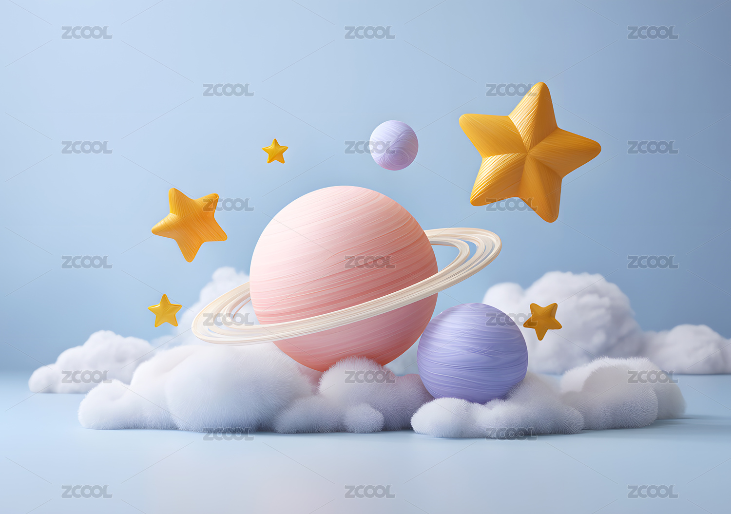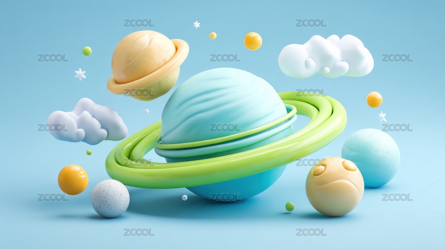 三维立体可爱的星球和笑脸,宇宙星球插画