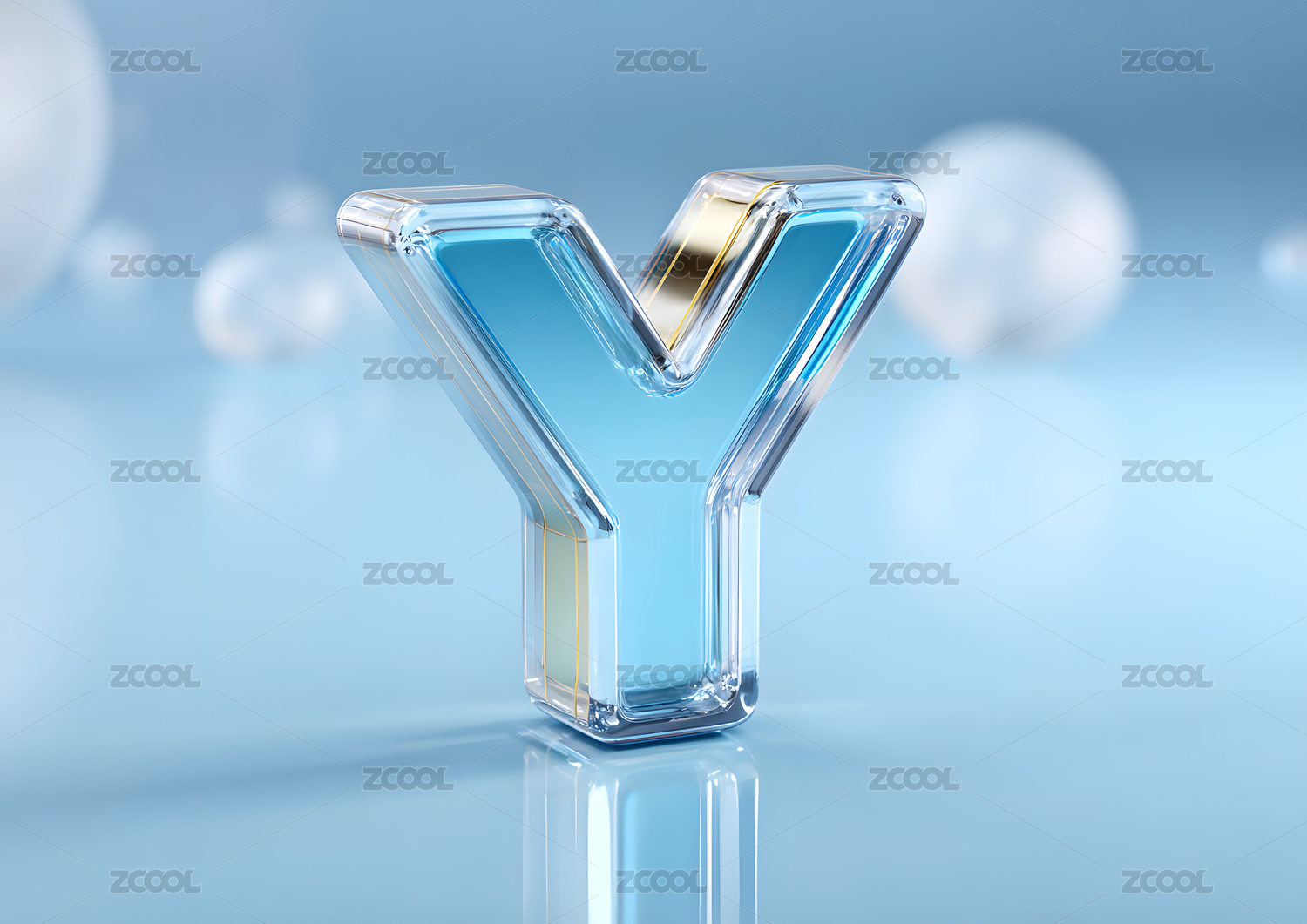 透明玻璃字母Y的立体展示
