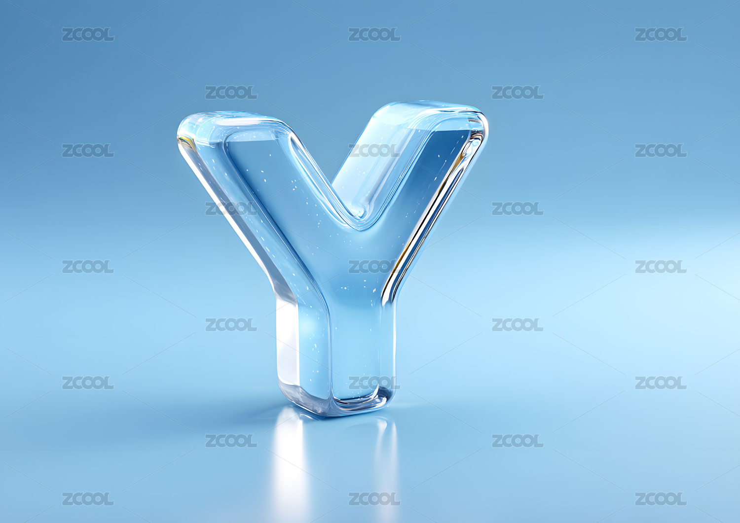 淡蓝色透明水晶艺术字字母Y