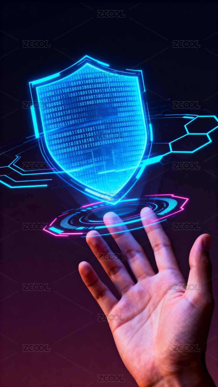 科技感盾牌与手指触碰