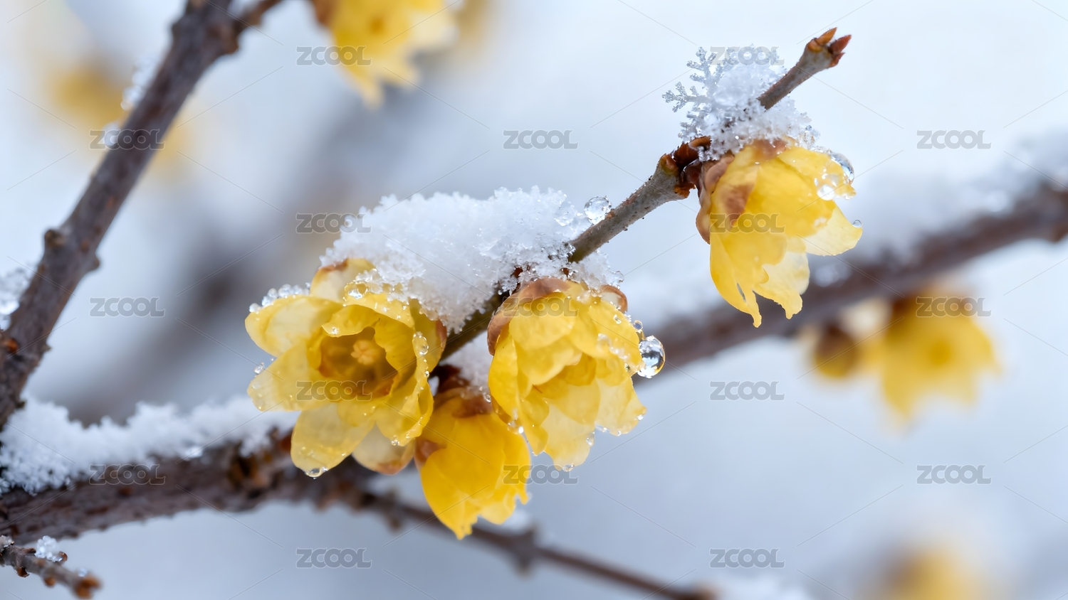 腊梅雪中绽放
