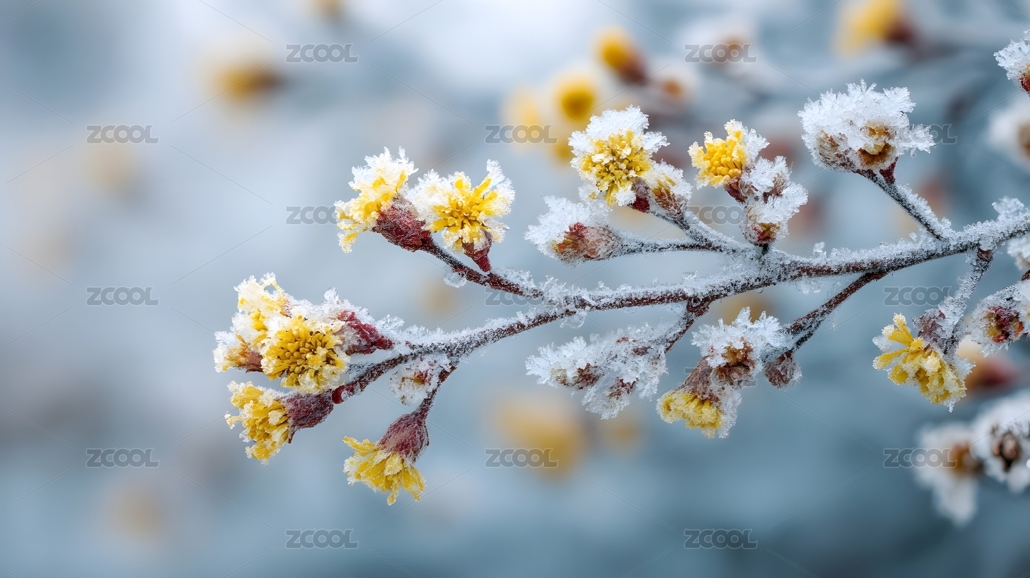 雪覆黄花绽放枝头