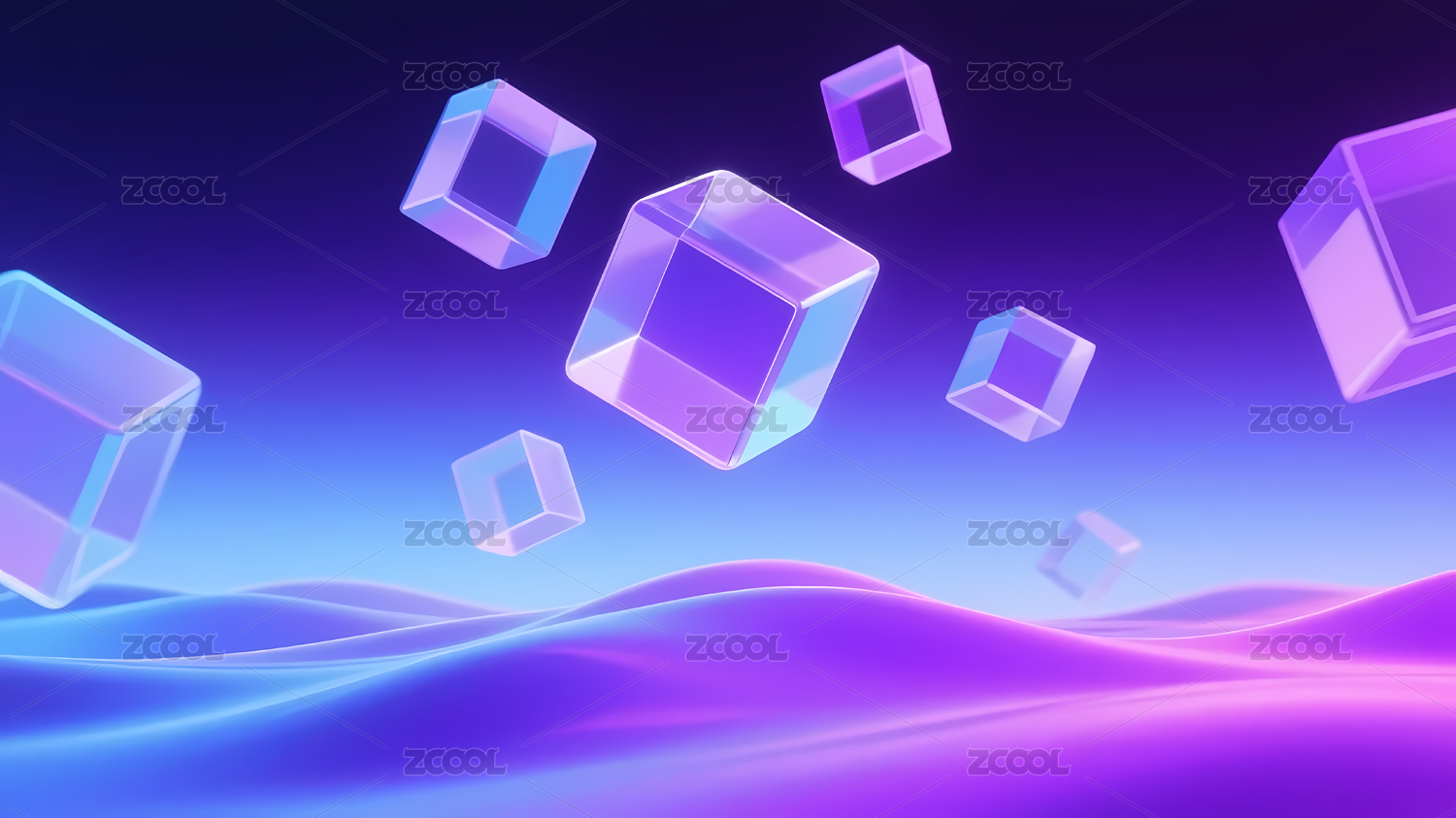 蓝色,背景,波浪,渐变,梦幻,立方体,透明,紫色,光影,悬浮
