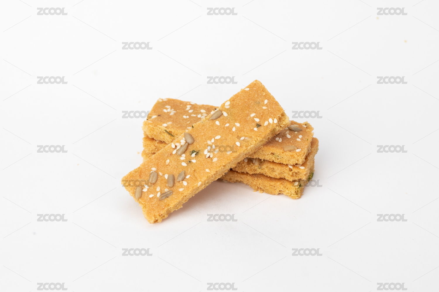饼干,谷物饼干,小零食,芝麻,瓜子仁,点心,休闲食品,烘焙食品,长条饼干,白色背景