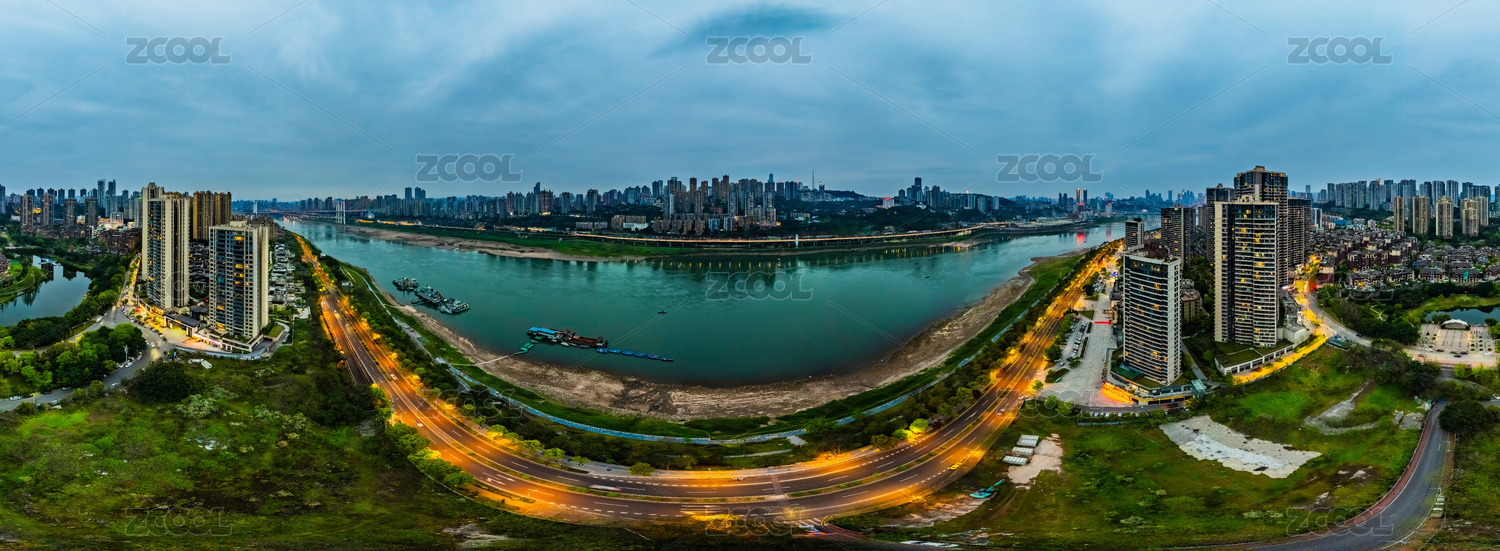 720度全景,VR全景,中国,重庆市,南岸区,街区,城市公路,长江外滩,无人,户外