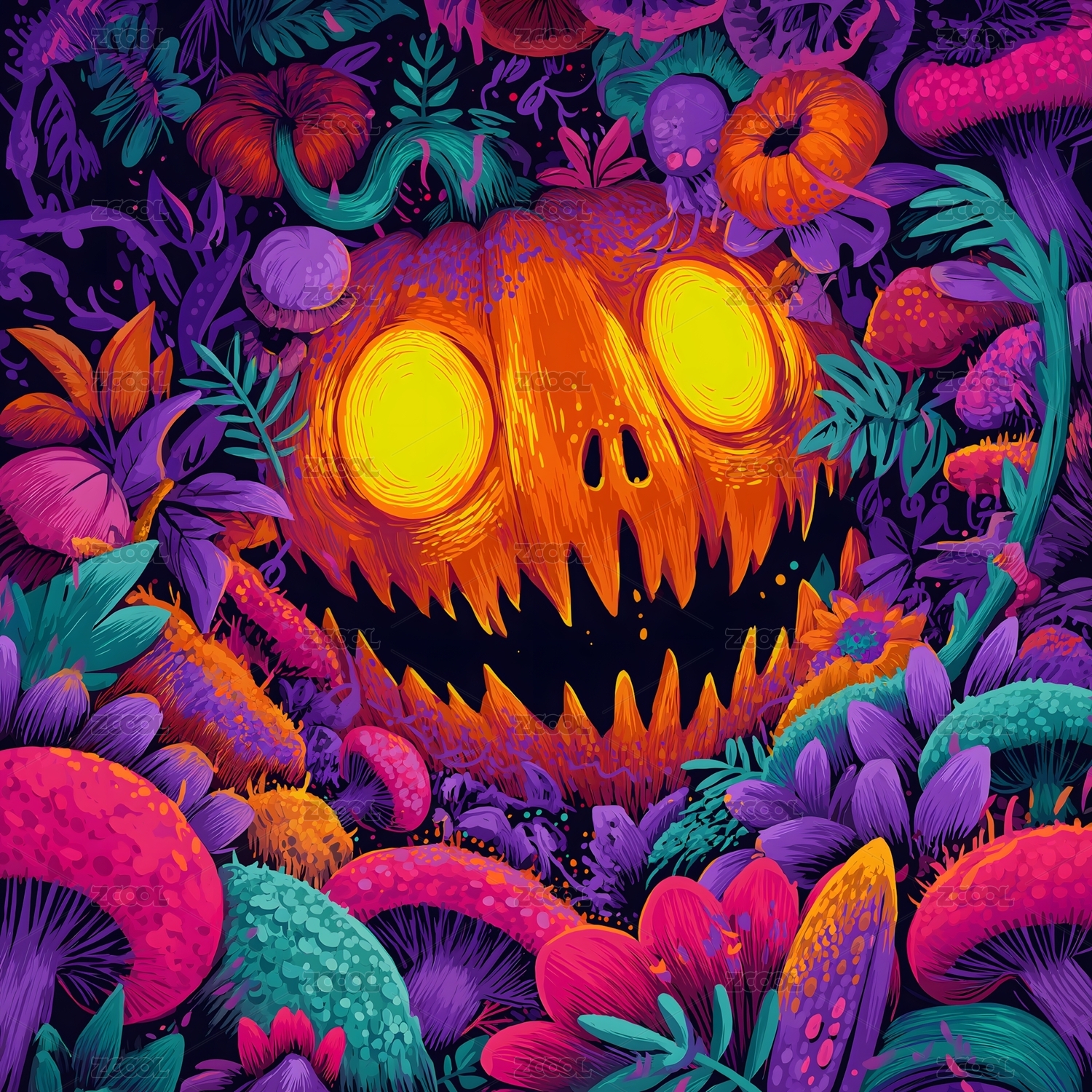 万圣,草人,奇幻,风格,画面,南瓜,蝙蝠,精致,诡异,氛围