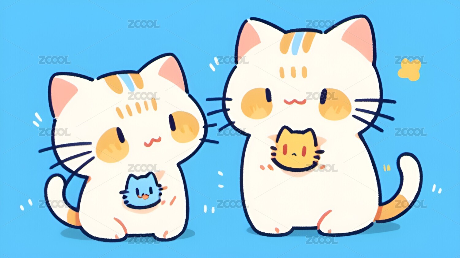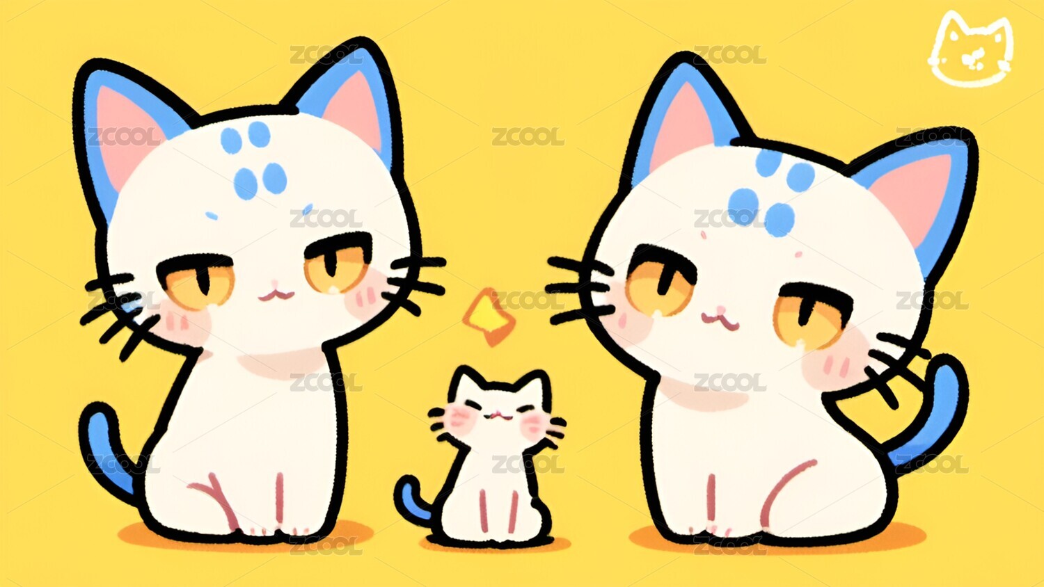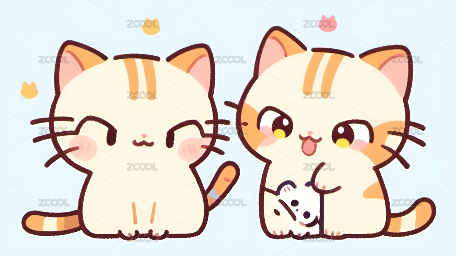 卡通,动漫,小猫,猫,可爱,动物,壁纸,插画