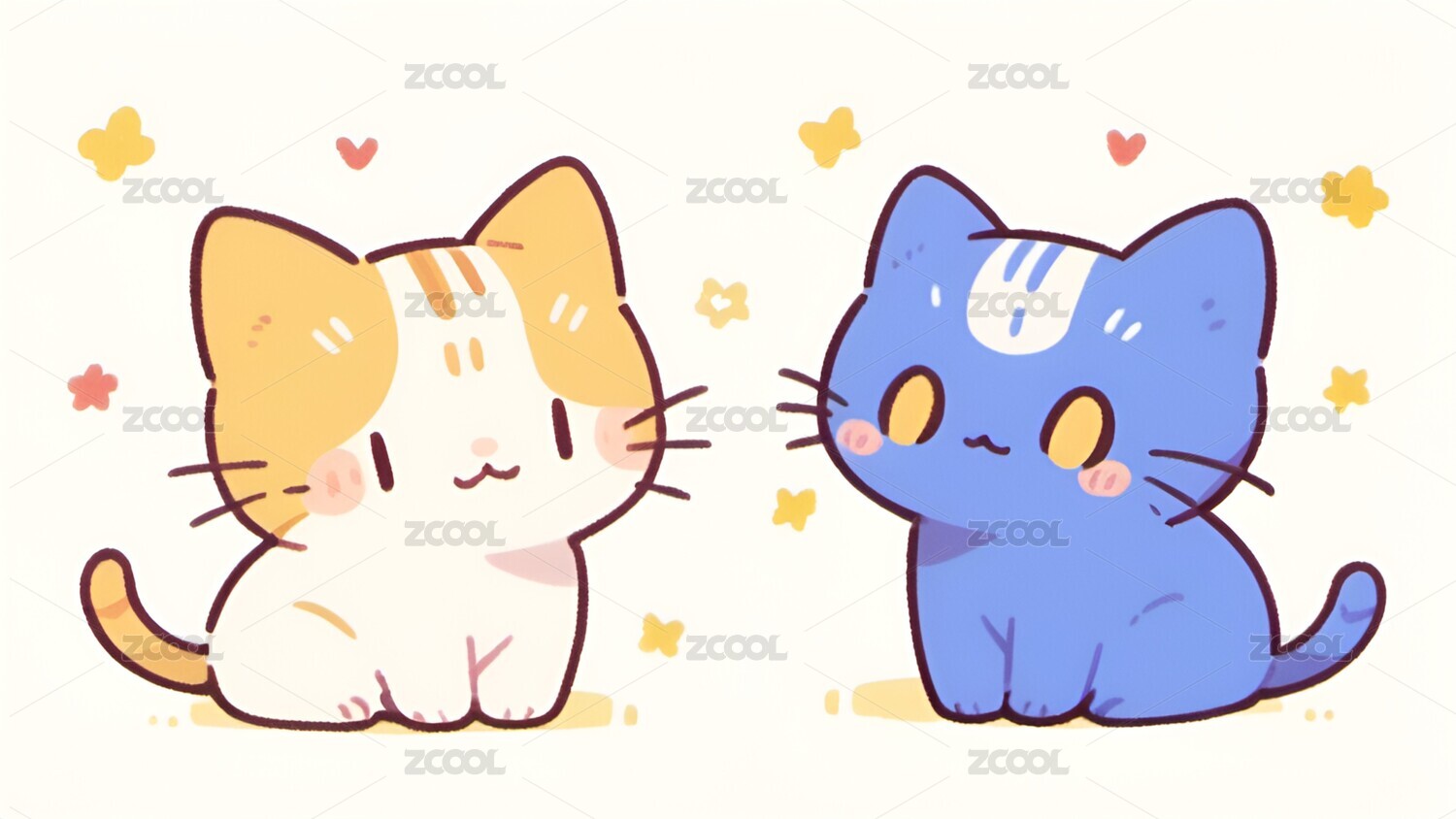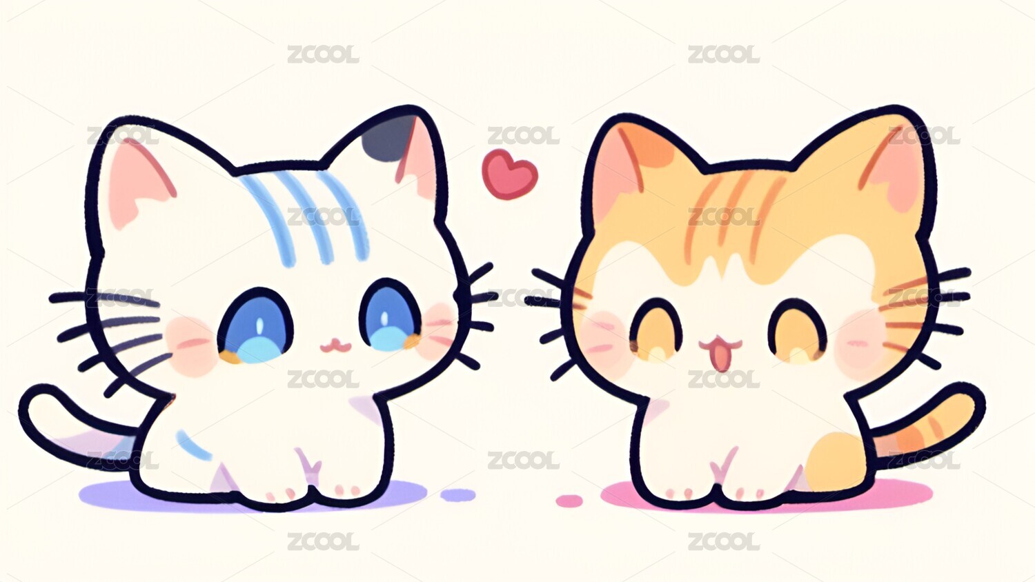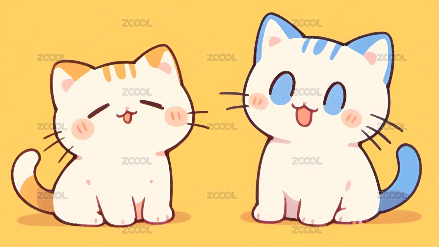 卡通,动漫,小猫,猫,可爱,动物,壁纸,插画