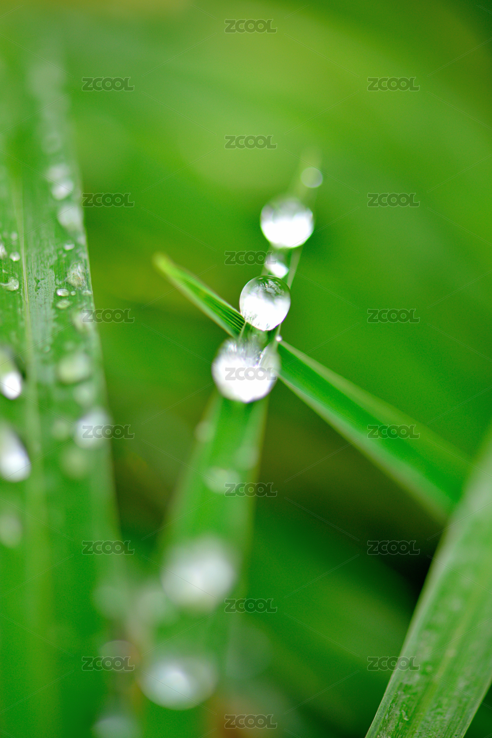初夏雨后茅草叶上晶莹剔透千姿百态的露珠