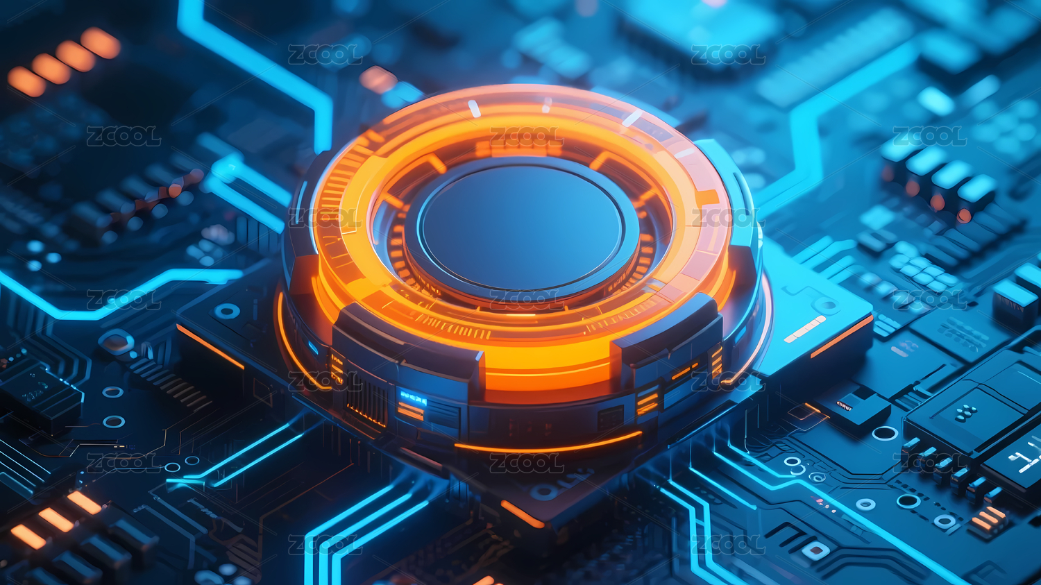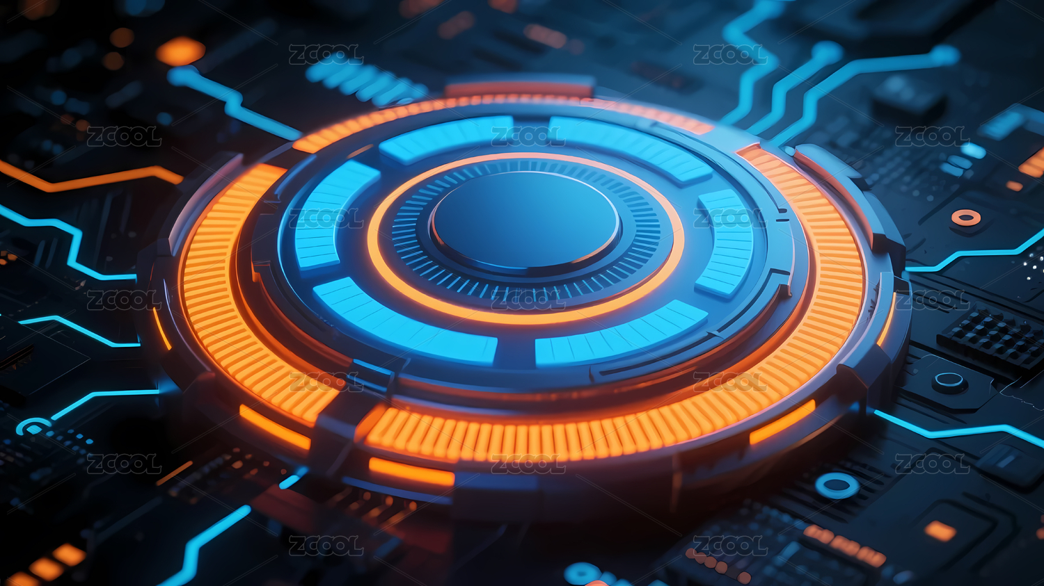 科技,电路,元件,蓝光,橙线,黄线,未来,纹理,圆形,发光