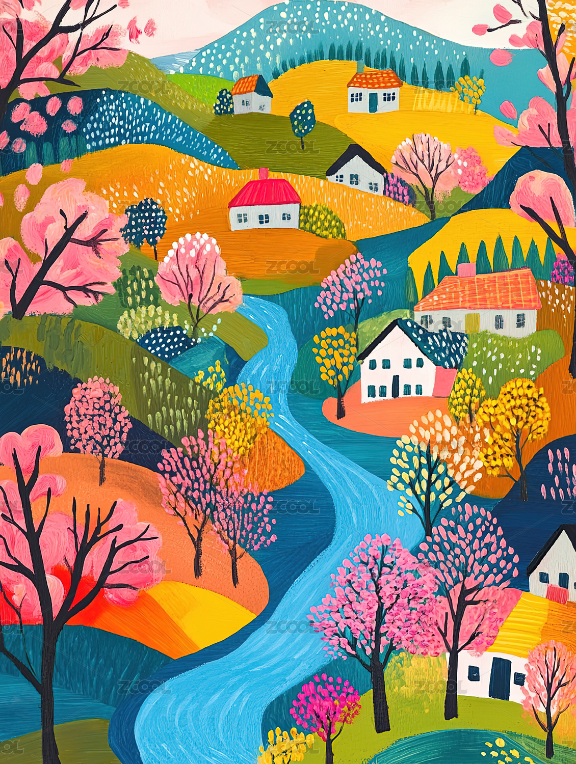 五彩缤纷的山村风光画