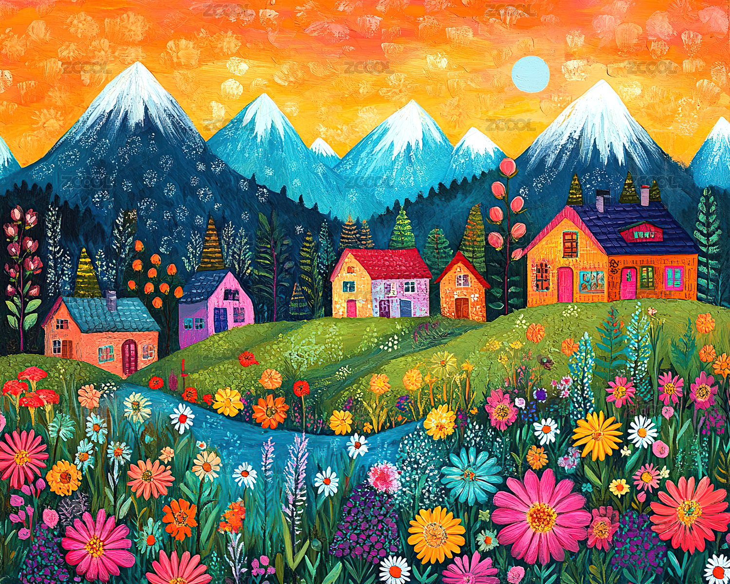色彩缤纷的山谷花溪