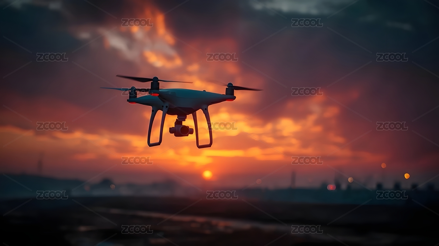 蓝色,科技,背景,现代,设备,红色,橙色,创新,无人机,夕阳