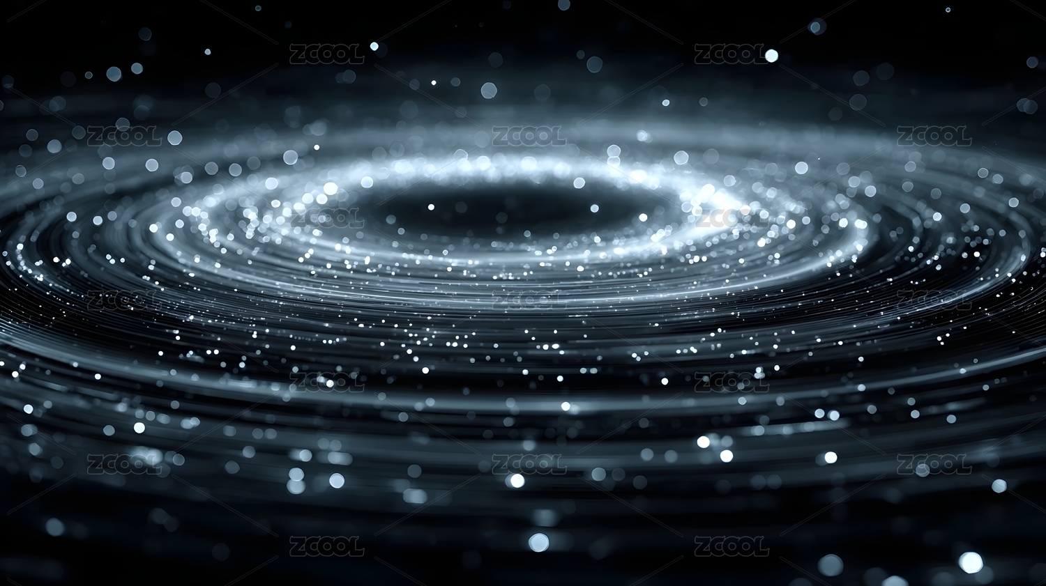 深蓝色,科技感,未来感,抽象艺术,数字艺术,同心圆,光点,光晕,视觉效果,神秘感