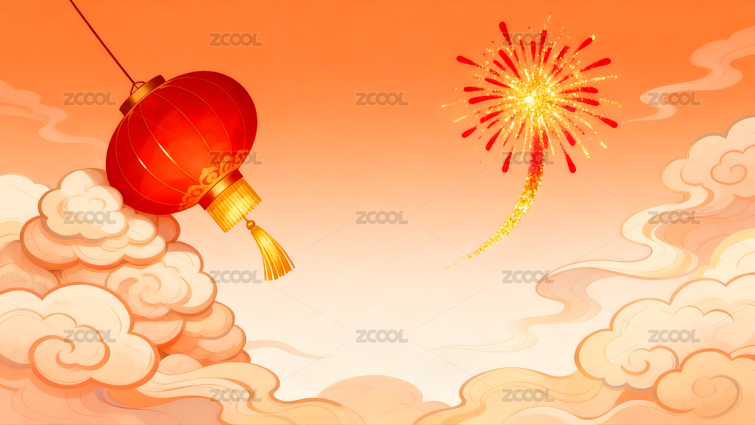 新年,春节,灯笼,烟花,节日,喜庆,红色,祥云,中国风,传统