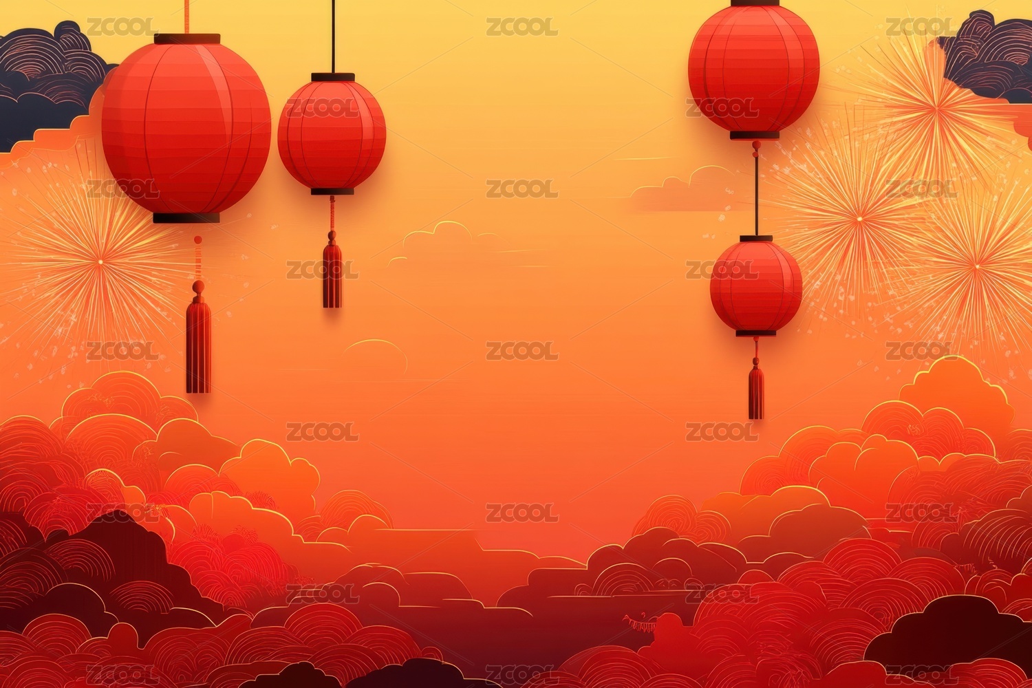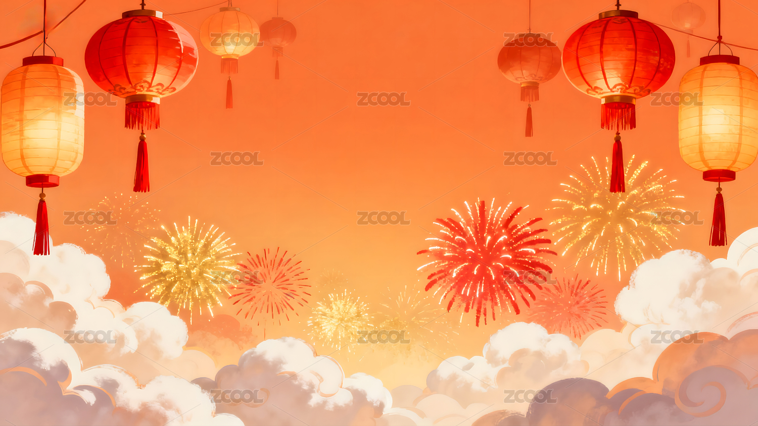 新年,春节,灯笼,烟花,节日,喜庆,红色,祥云,中国风,传统