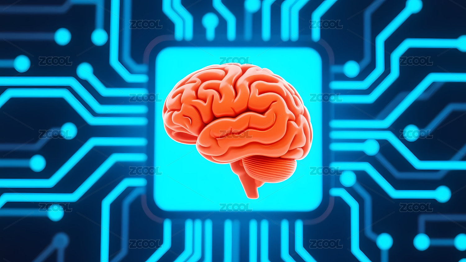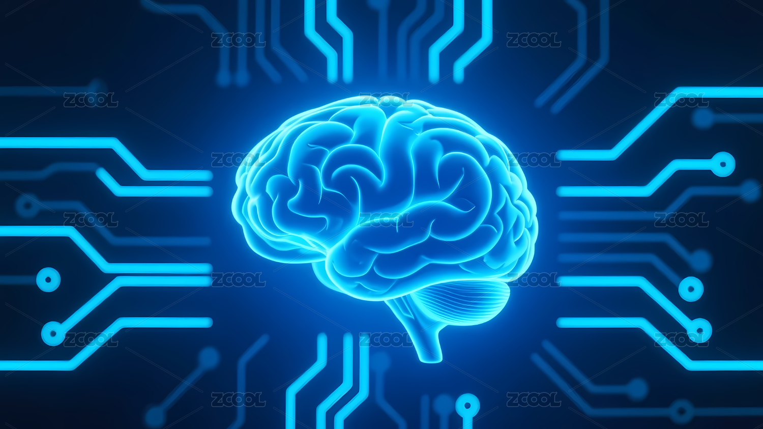 大脑,电路,科技,未来,蓝色,红色,深色,创意,图案,轮廓