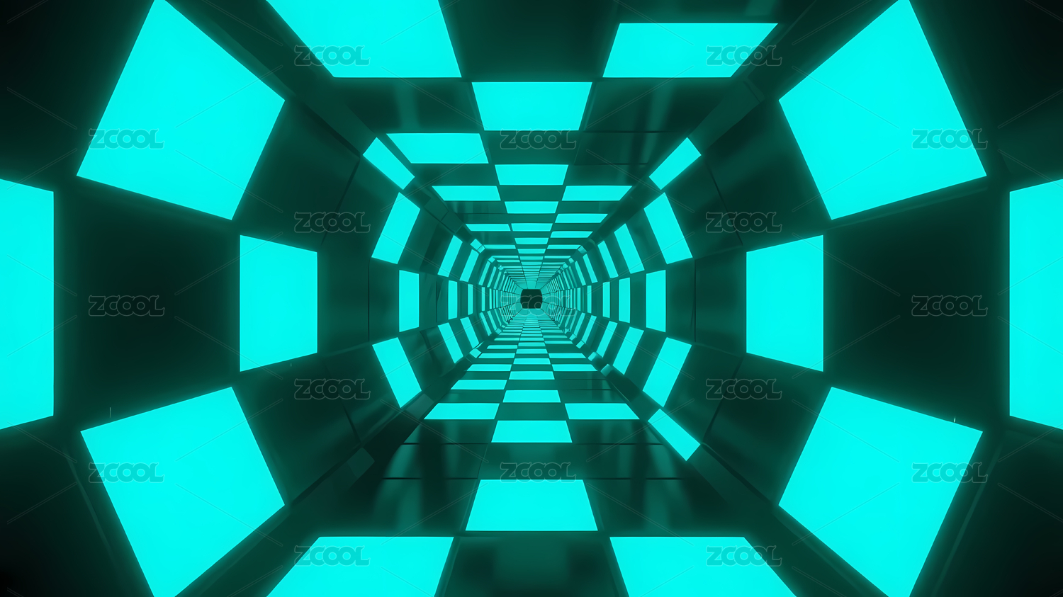 蓝绿色方块未来隧道