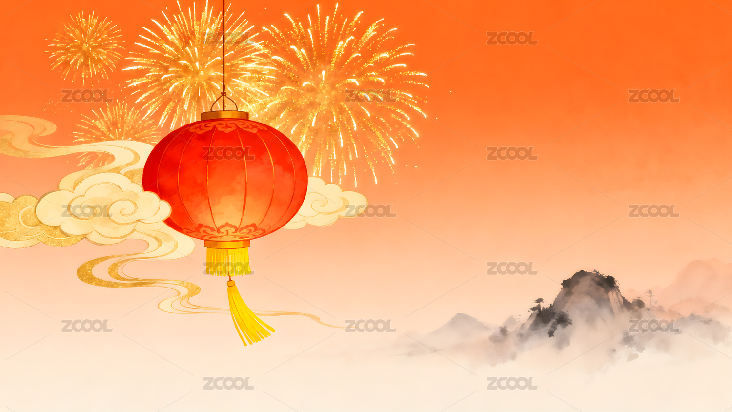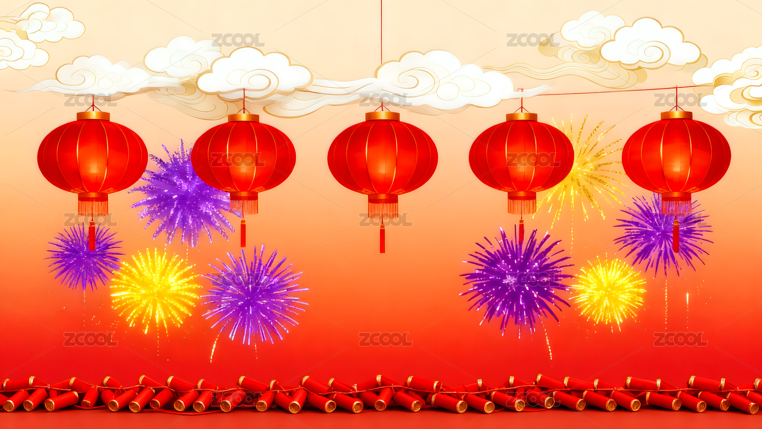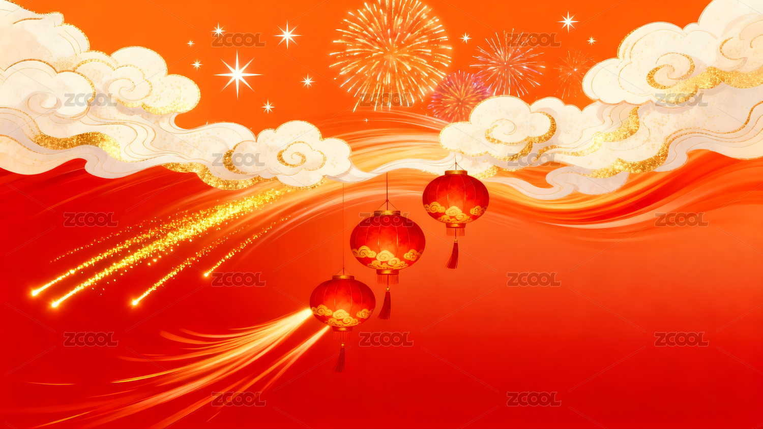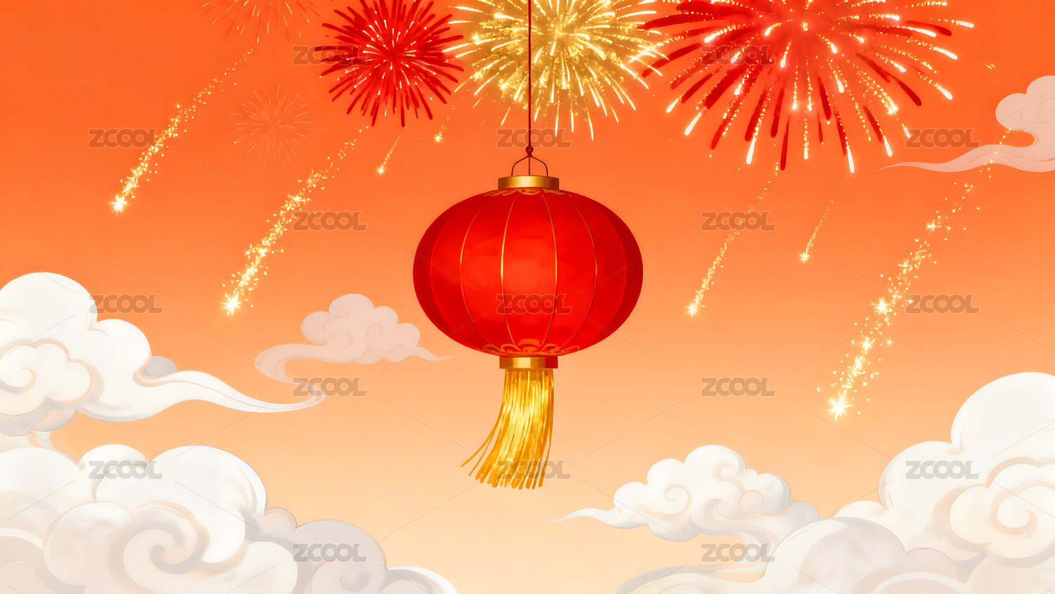 灯笼,烟花,春节,新年,庆典,节日,祥云,喜庆,团圆,红色