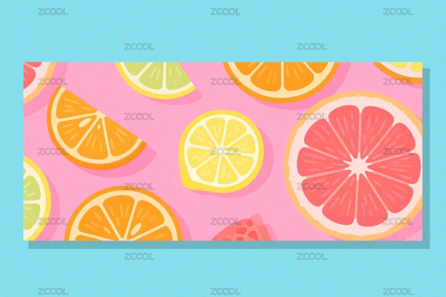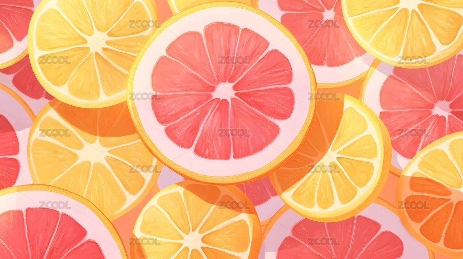 水果葡萄柚橘子柠檬切片插画海报背景