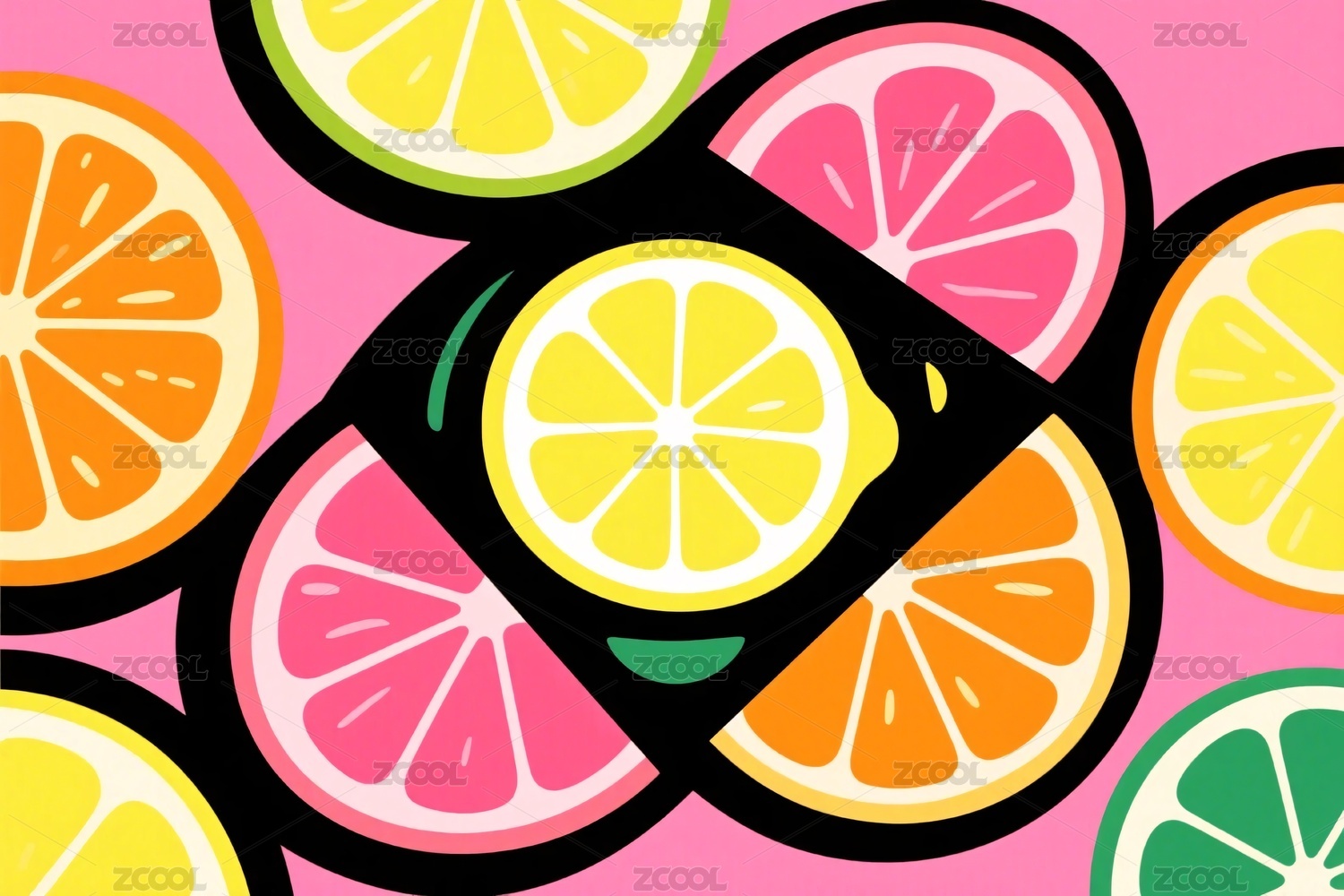 多彩柑橘切片插画