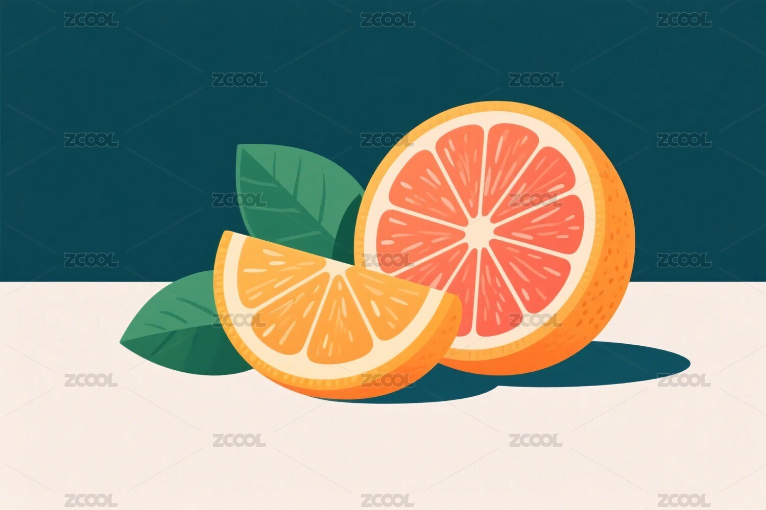 小清新水果柚子橙子片插画