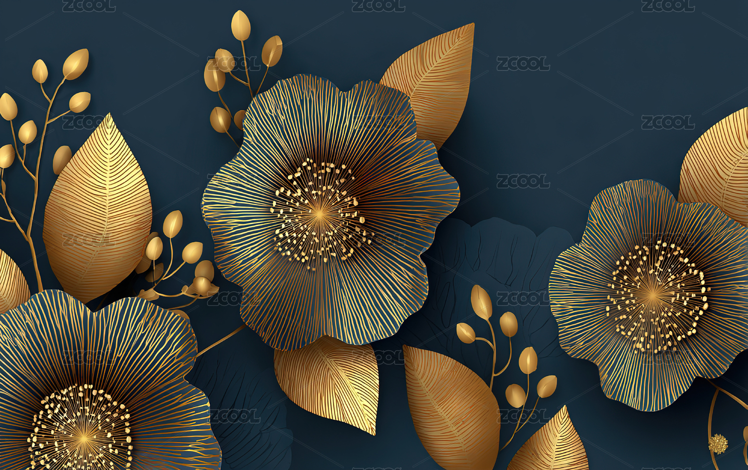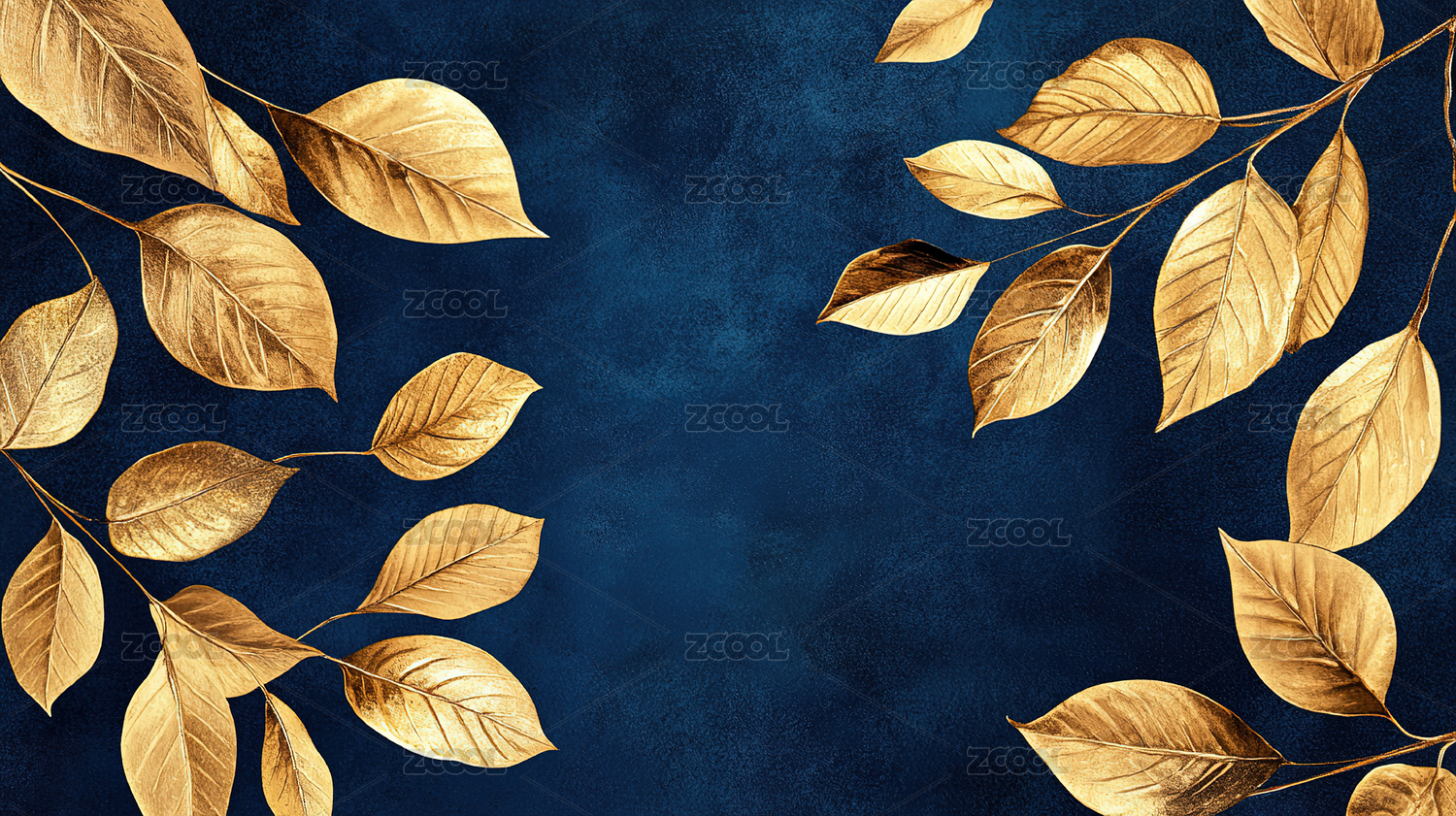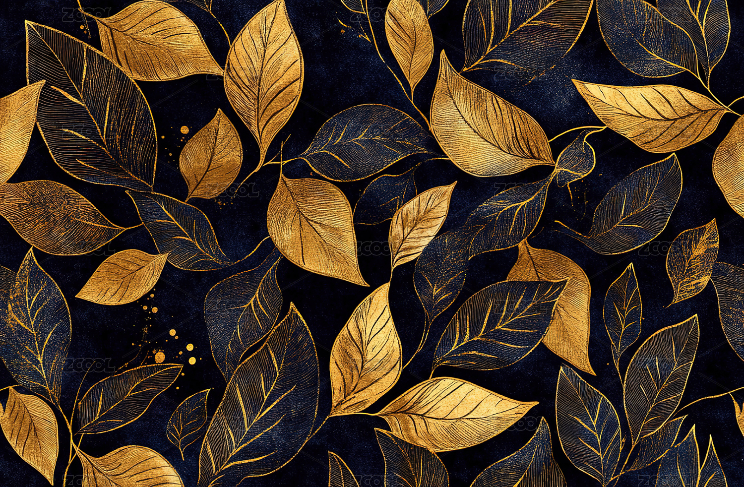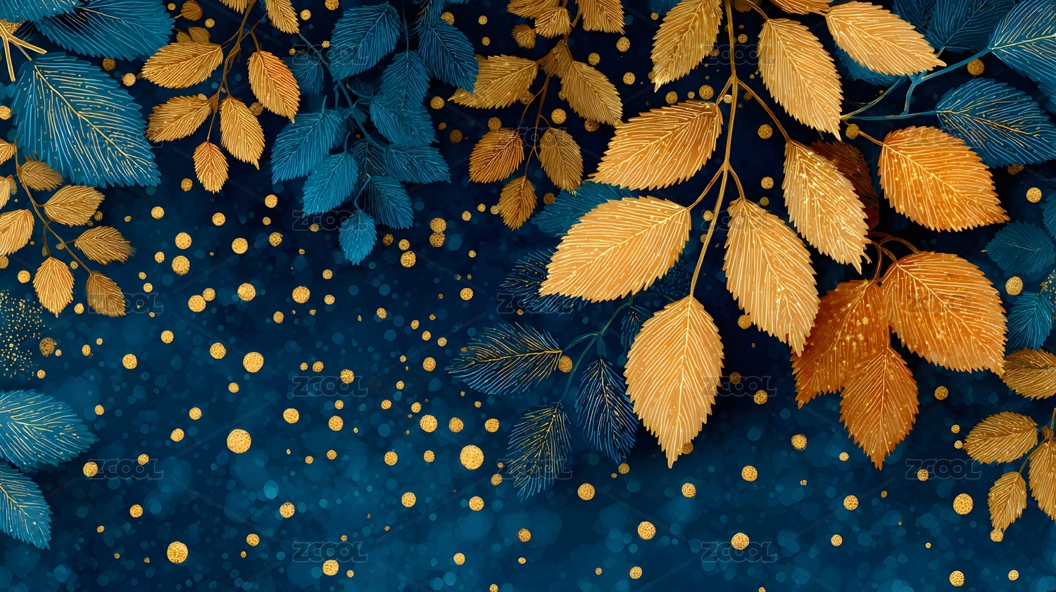 深蓝背景金色叶片图案