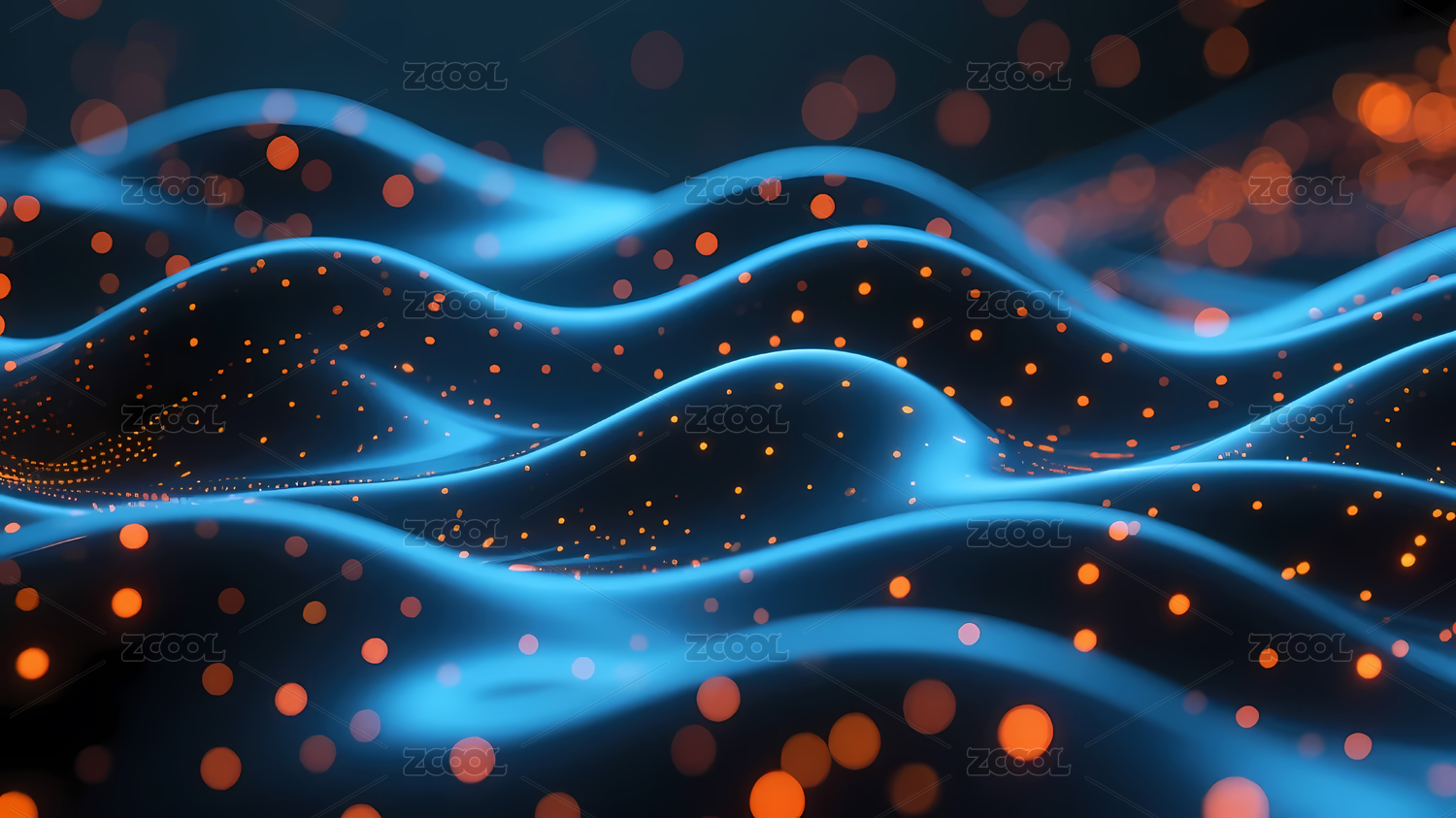 蓝色,波浪,光点,抽象,背景,梦幻,流动,黄色,艺术,装饰