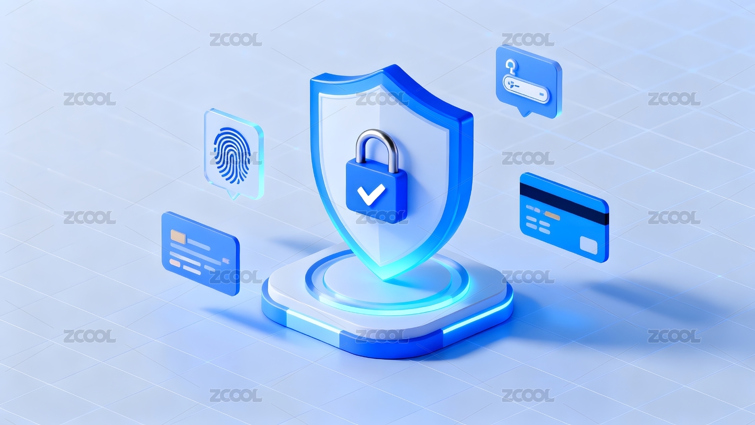 蓝色,科技,数字,现代,设计,安全,盾牌,锁,指纹,用户