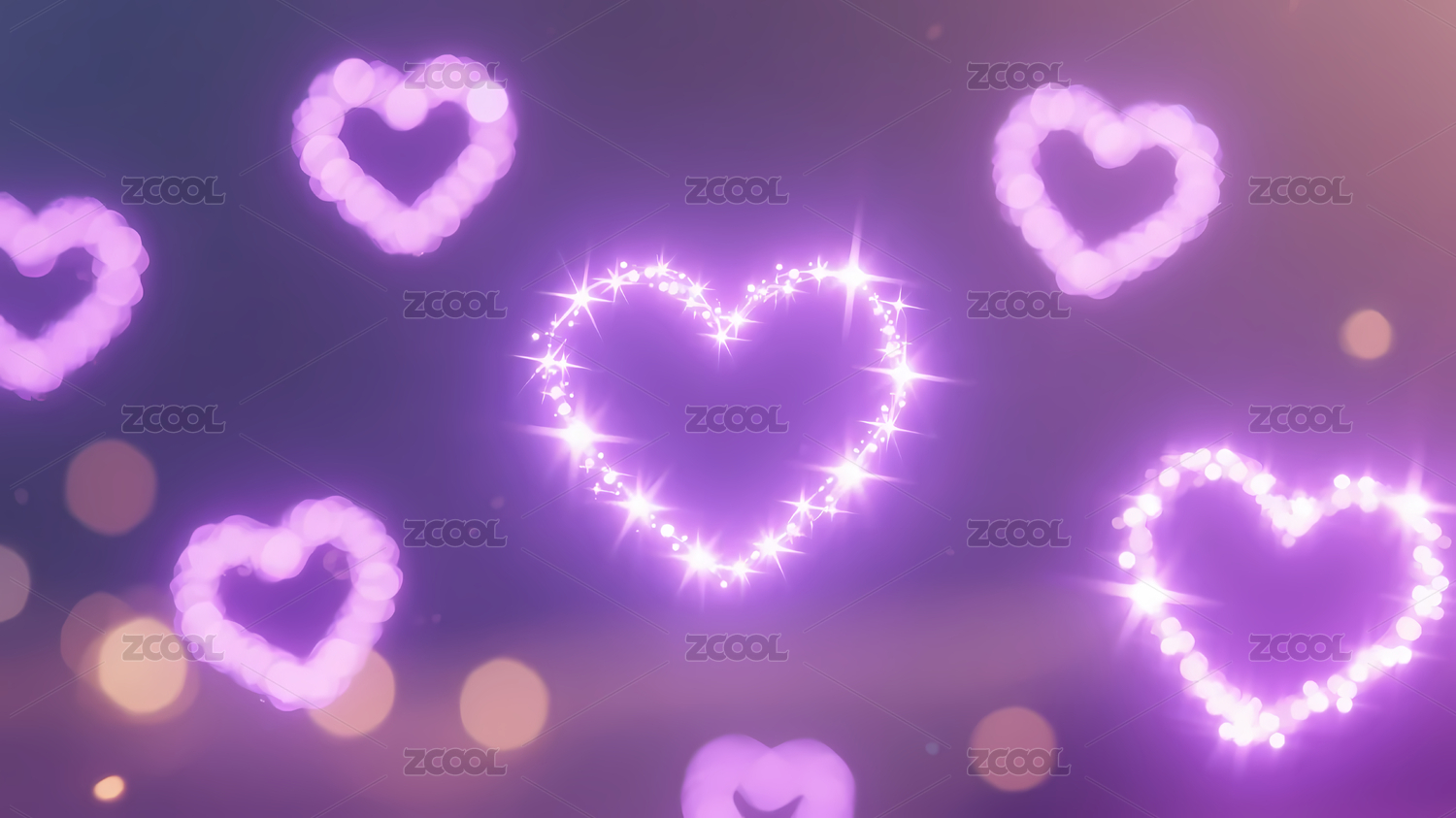 多个紫粉心形图案与光斑