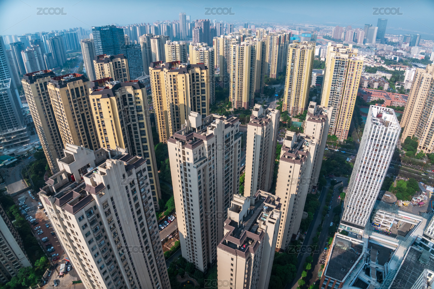 云南昆明城市住宅楼盘社区房地产航拍天际线