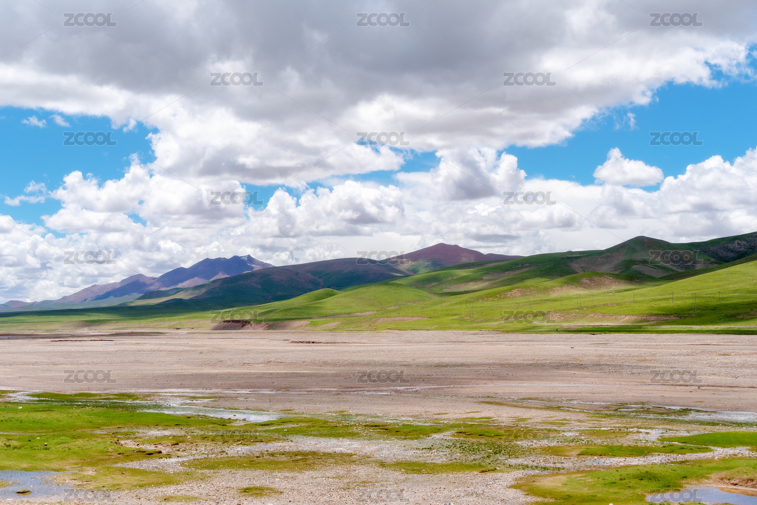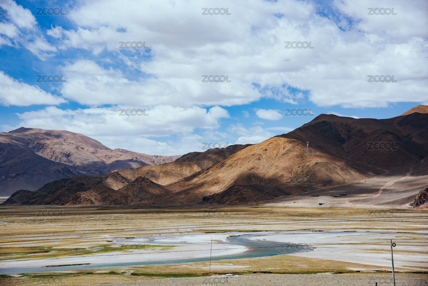 中国蓝天白云下G219新藏公路喀喇昆仑山