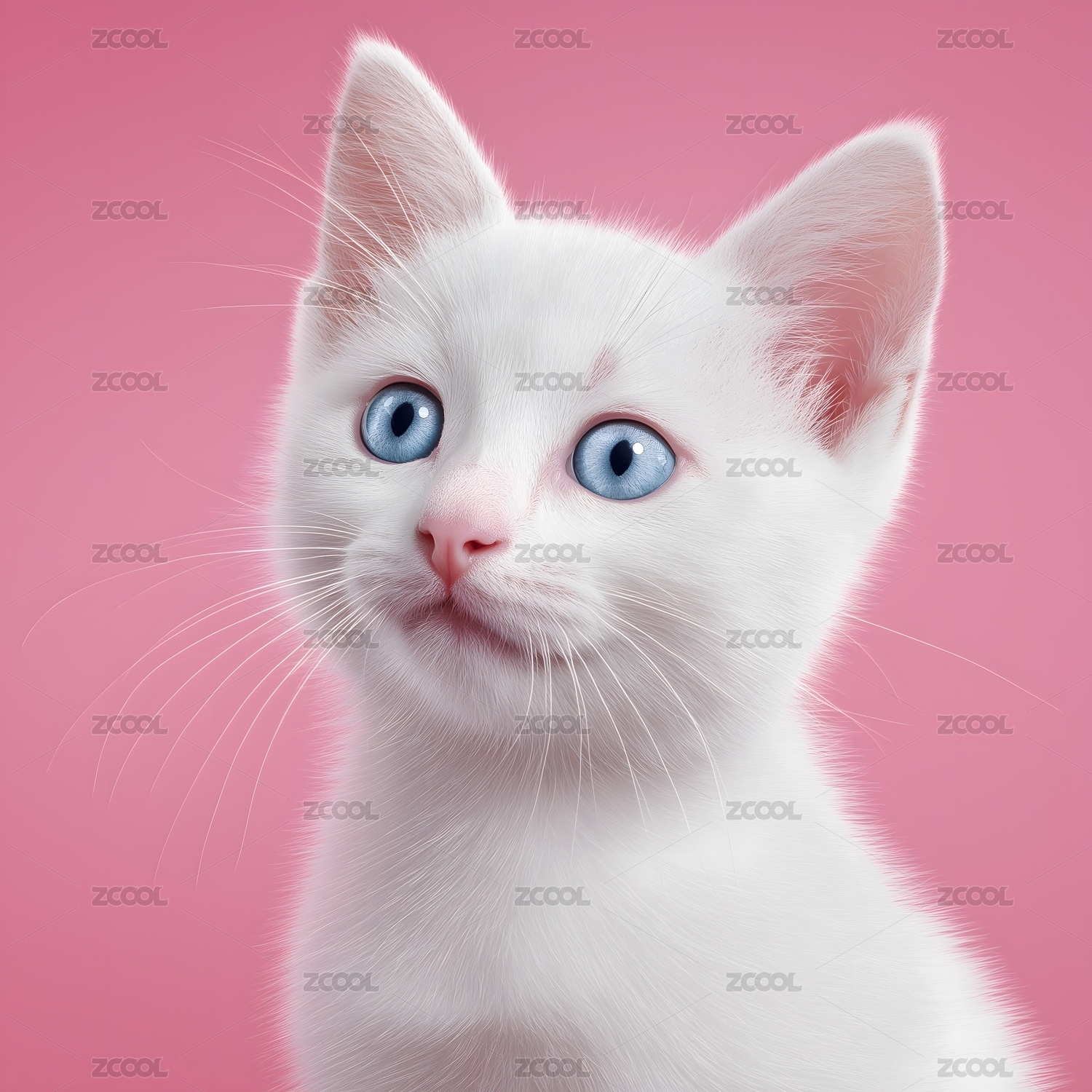 粉白,萌猫,可爱,风格,画面,猫咪,蓝眼,粉色,柔美,雅致