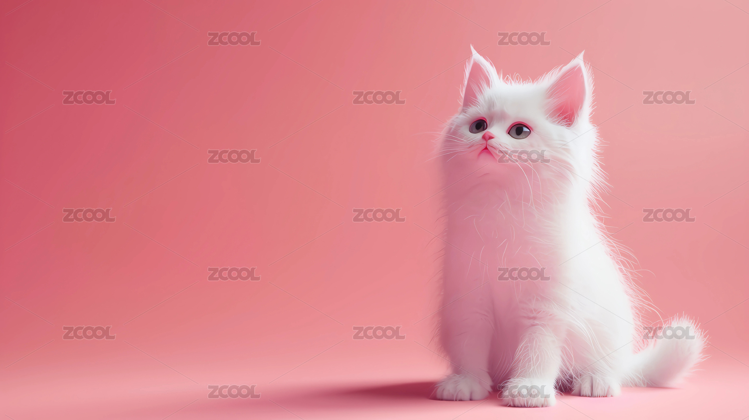 粉红背景下可爱的白猫
