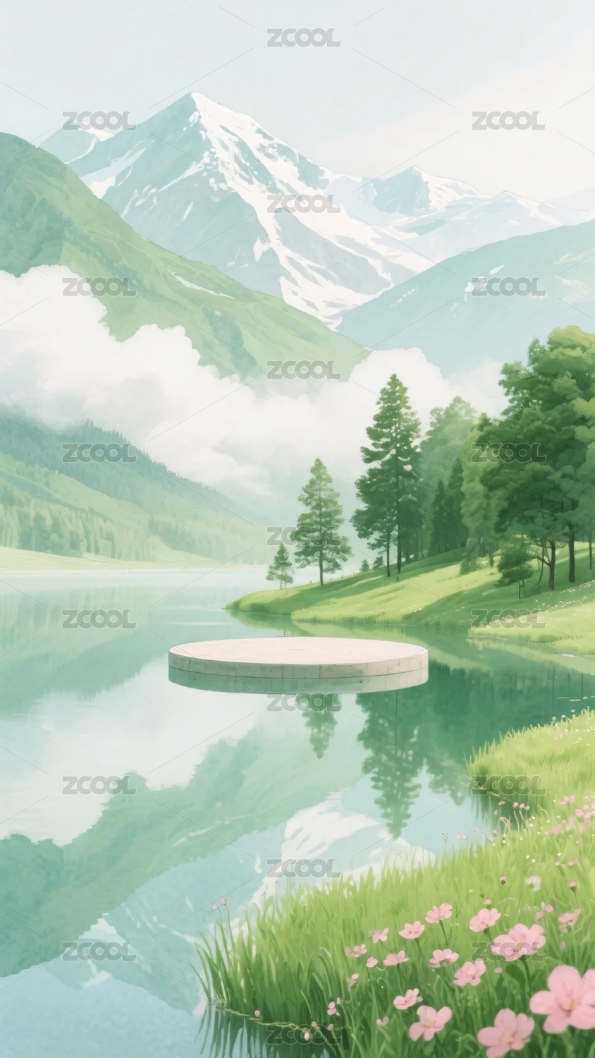 风景山水湖景插画
