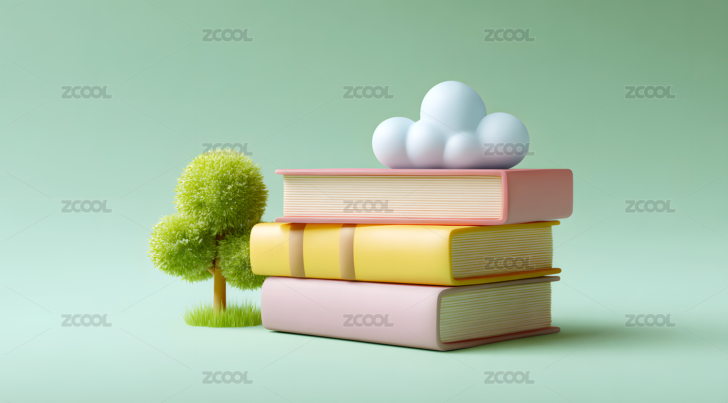 书本,小树,创意,场景,清新,简约,梦想,知识,艺术,设计