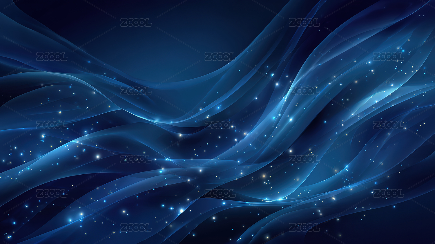 蓝色,波浪,线条,梦幻,神秘,深黑,流动,光点,优雅,闪烁