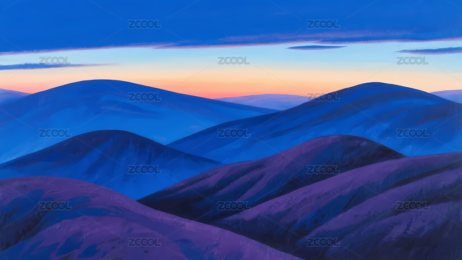 蓝色,紫色,渐变,抽象,柔和,天空,自然,山峦,层次,景观