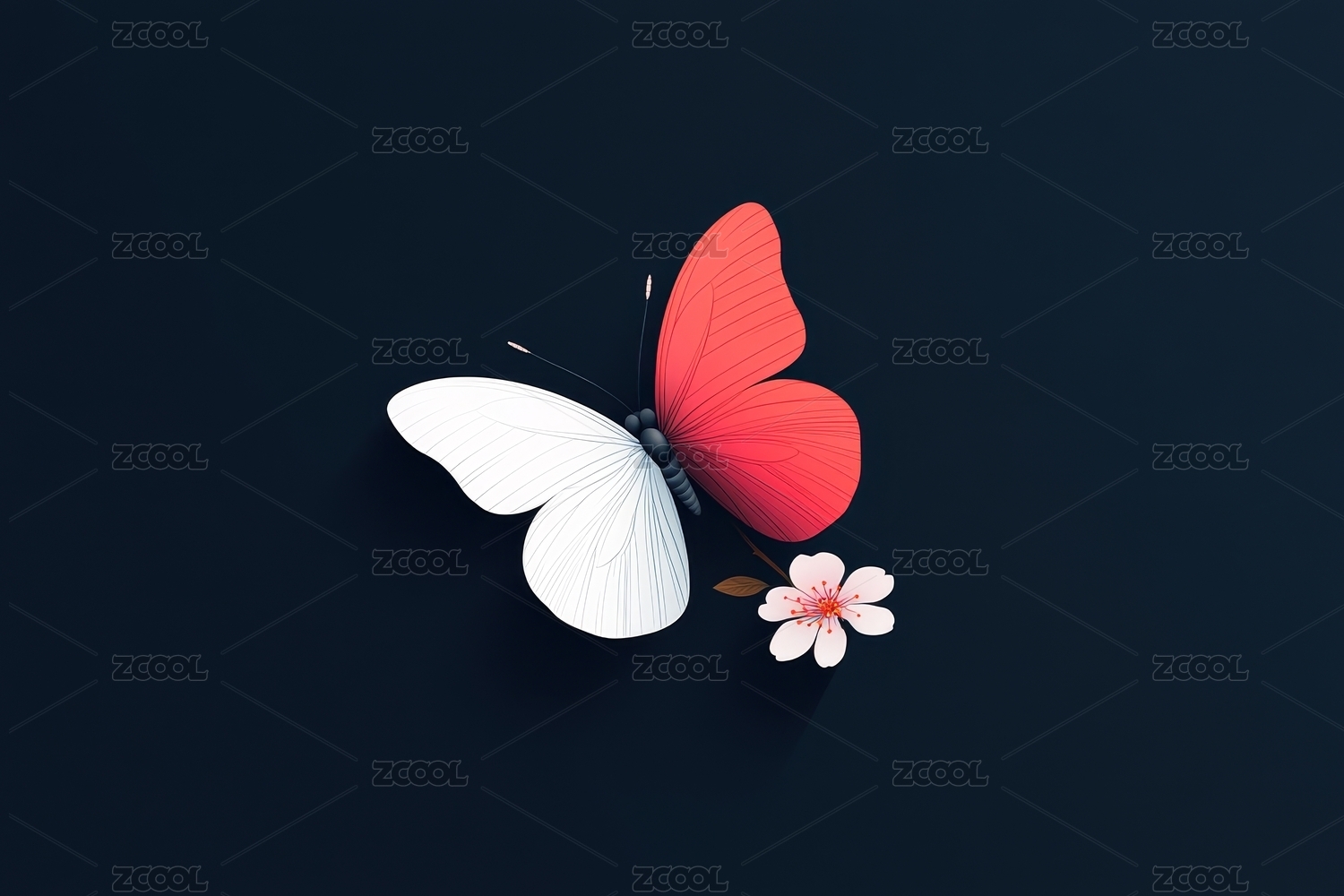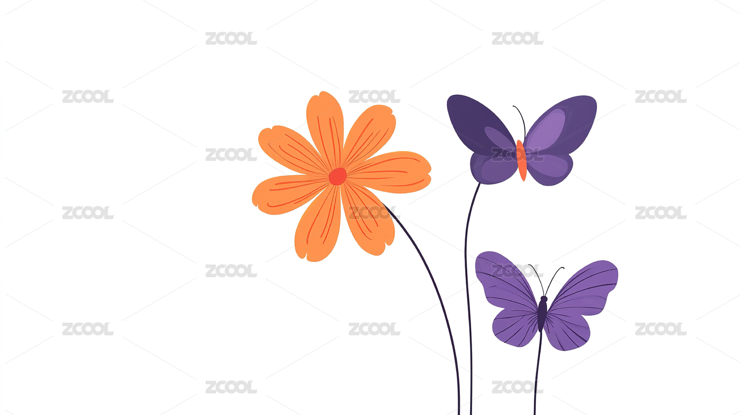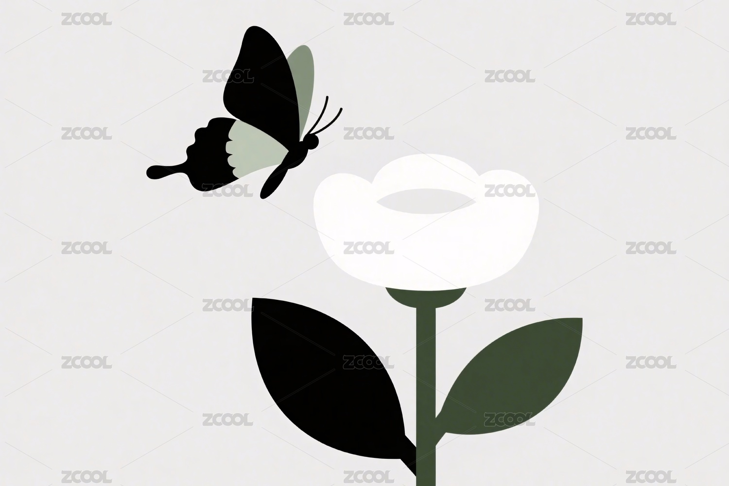 蝴蝶,花朵,绿叶,简笔画,插画,矢量图,植物,自然,装饰,小清新