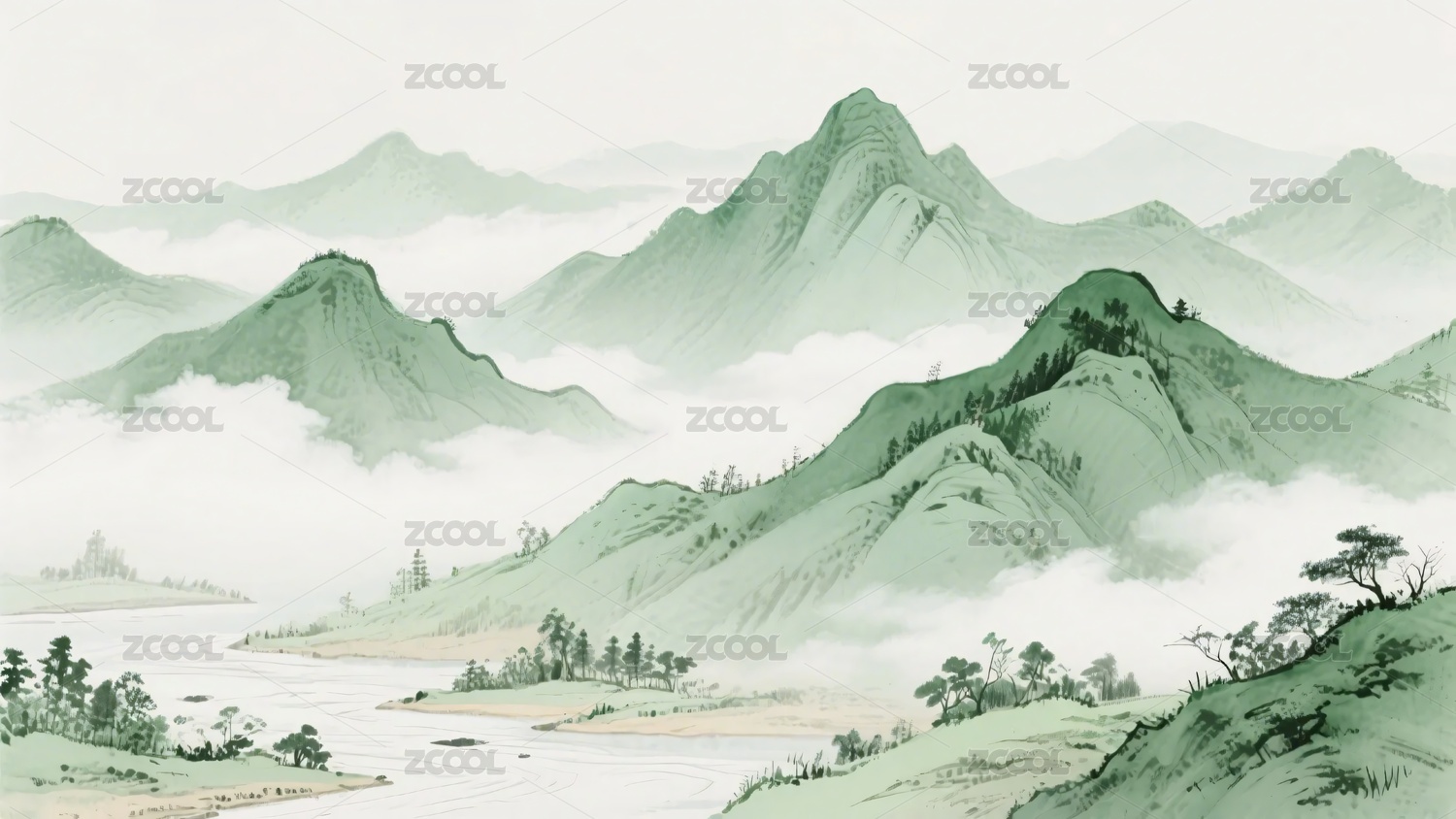 山水,山水画,水墨,国画,风景,插画,手绘,国画山水,山水画卷,水墨山水