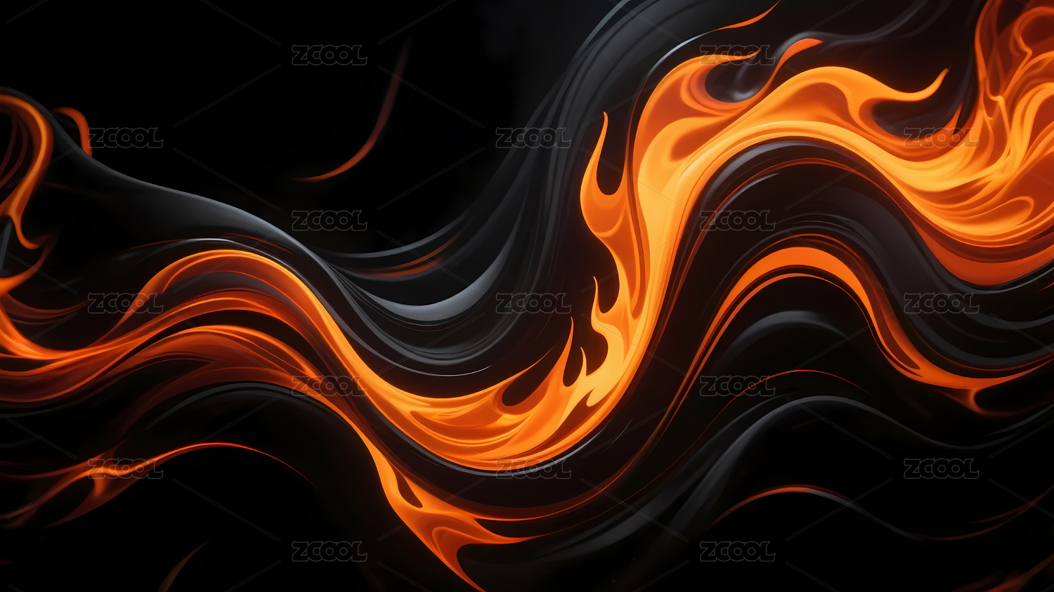 波浪,线条,渐变,抽象,背景,流畅,黑色,明亮,深邃,橙色