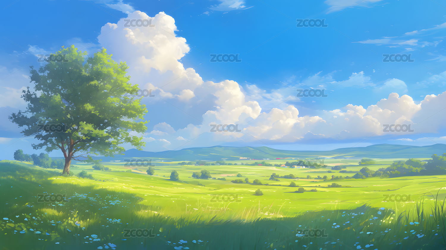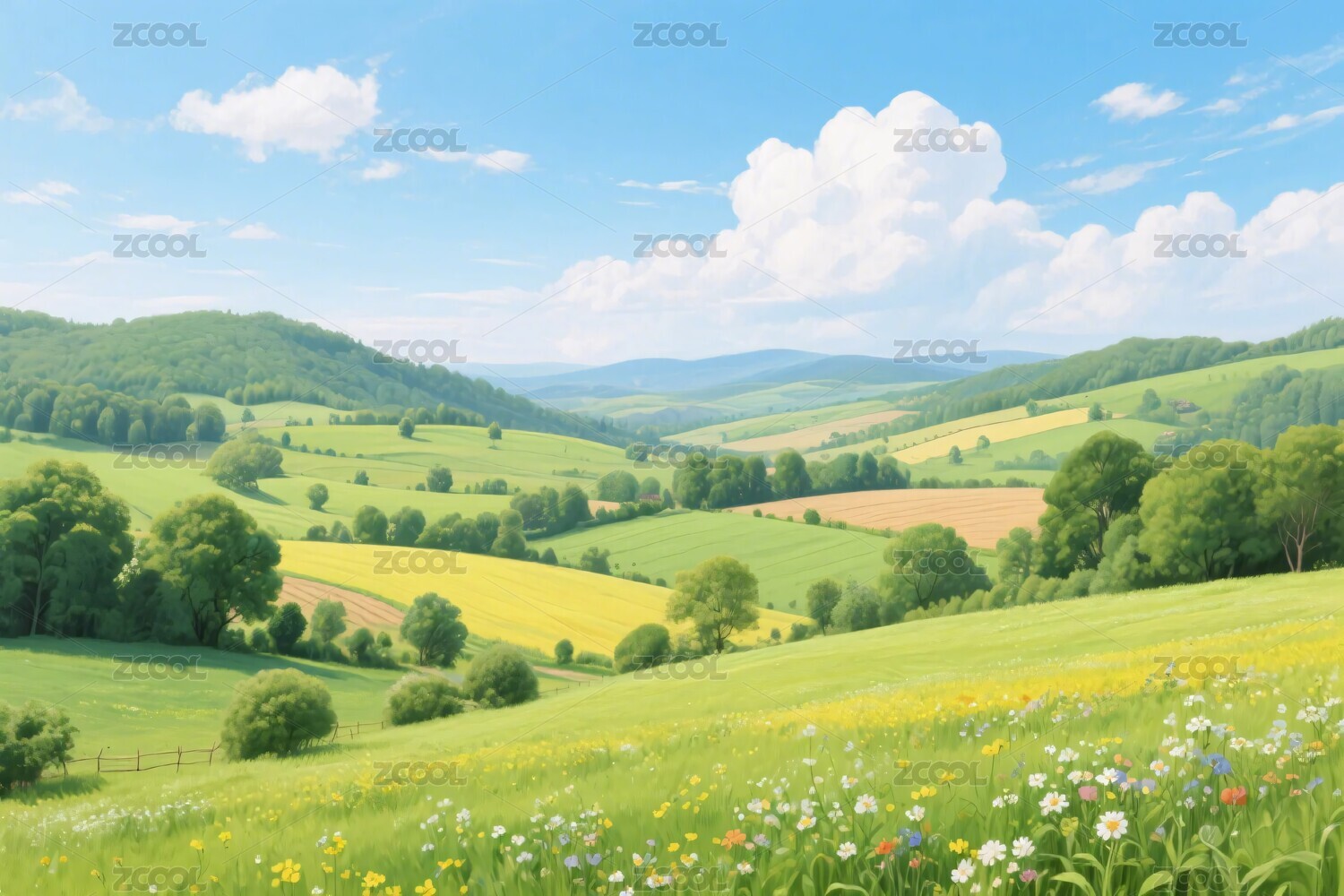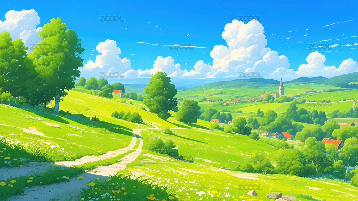 田园,乡村,风景,自然,宁静,清新,绿地,蓝天,丘陵,房屋