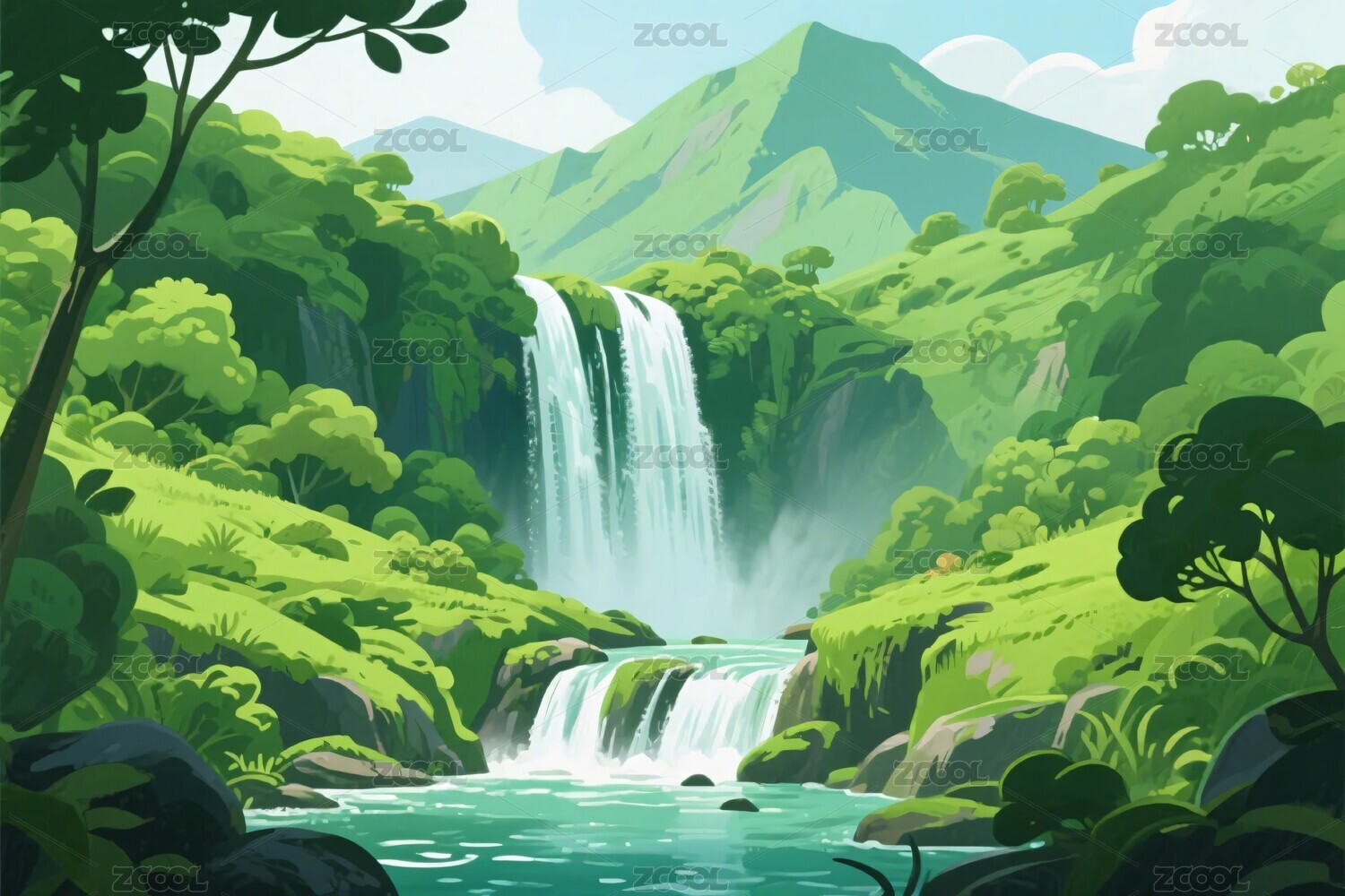 森林,瀑布,河流,山水,自然,风景,丛林,青苔,树木,植被
